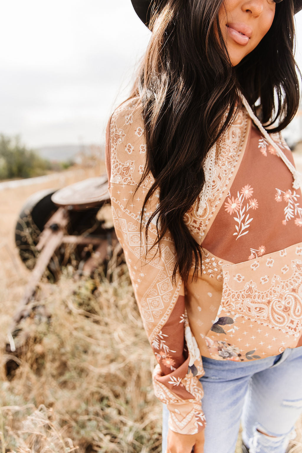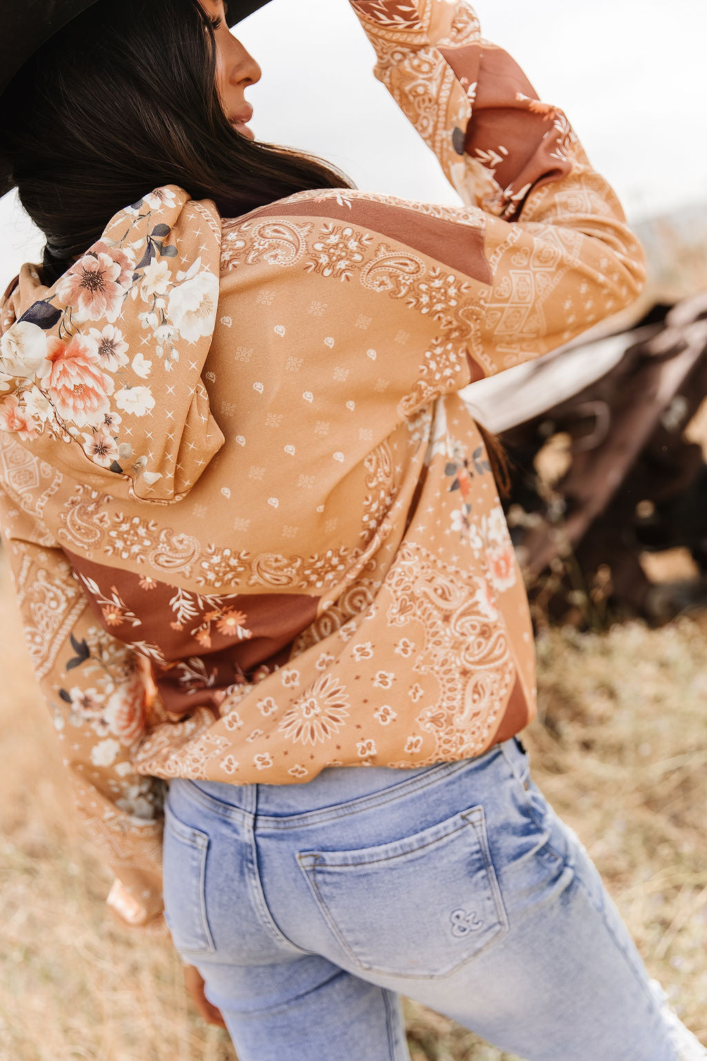 This relaxed-fit hoodie is a dreamy mix of patchwork paisley and floral prints — perfectly soft, perfectly stretchy, perfectly effortless. Designed with a laid-back silhouette and cozy feel, it’s your go-to for casual days that still call for a little style. Pair it with your favorite denim for that easy, boho-meets-cozy look you’ll wear on repeat.