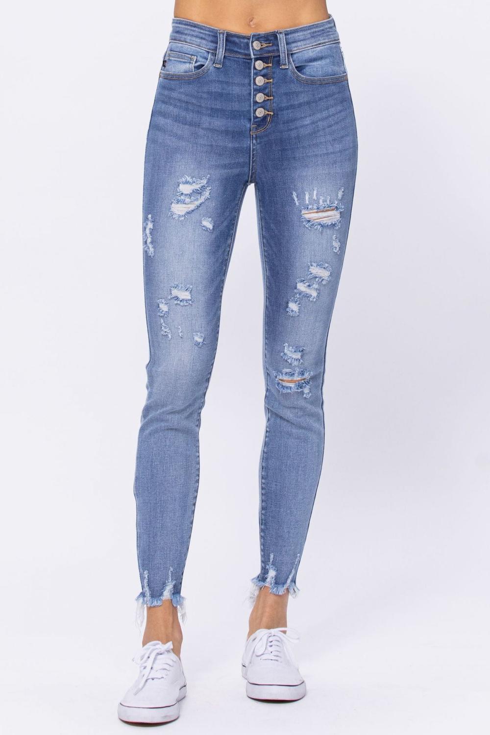 Judy Blue High Waist Destroyed Button Fly Skinny Denim