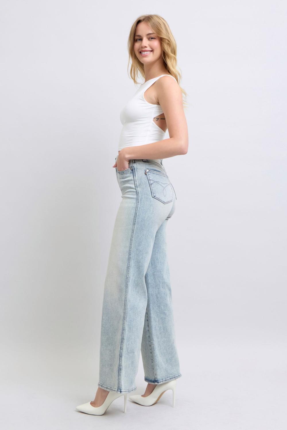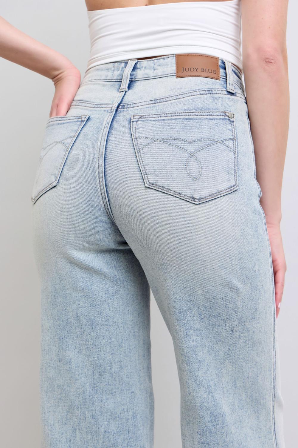 Judy Blue High Waist Tummy Control Retro Wide Leg Denim Jeans 88867