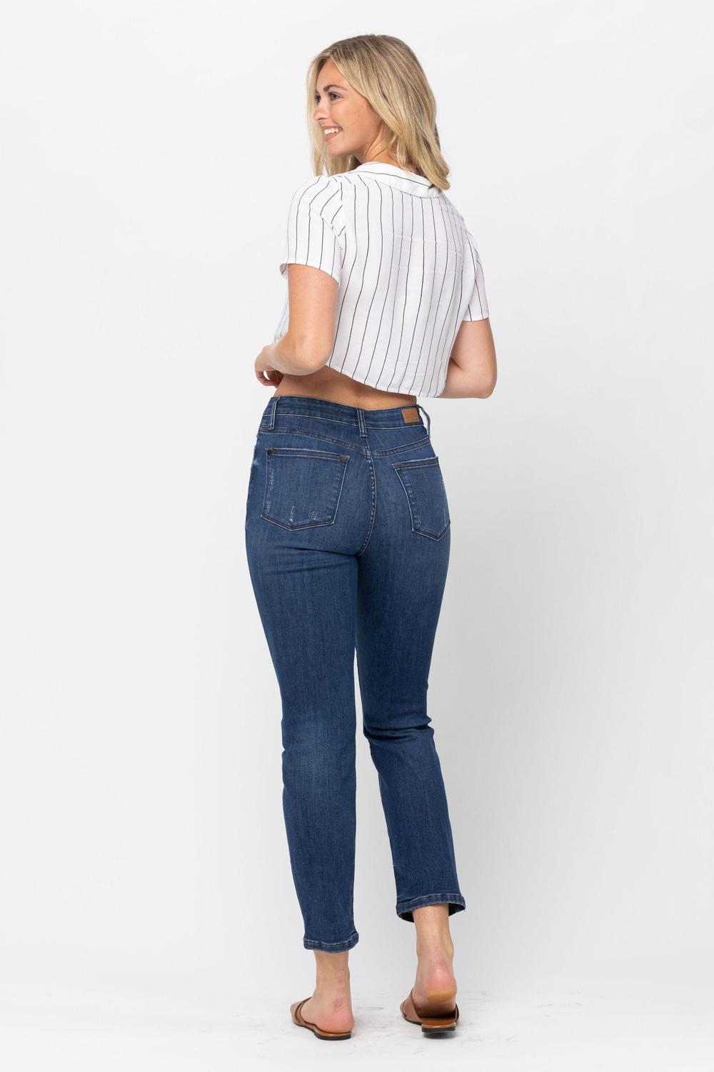 The JB88526 ZigZag Button Fly Boyfriend Jeans combine comfort with standout style. The unique fly design and destruction details make these a must-have for anyone wanting an easy, trendy denim option with Judy Blue’s signature stretch.