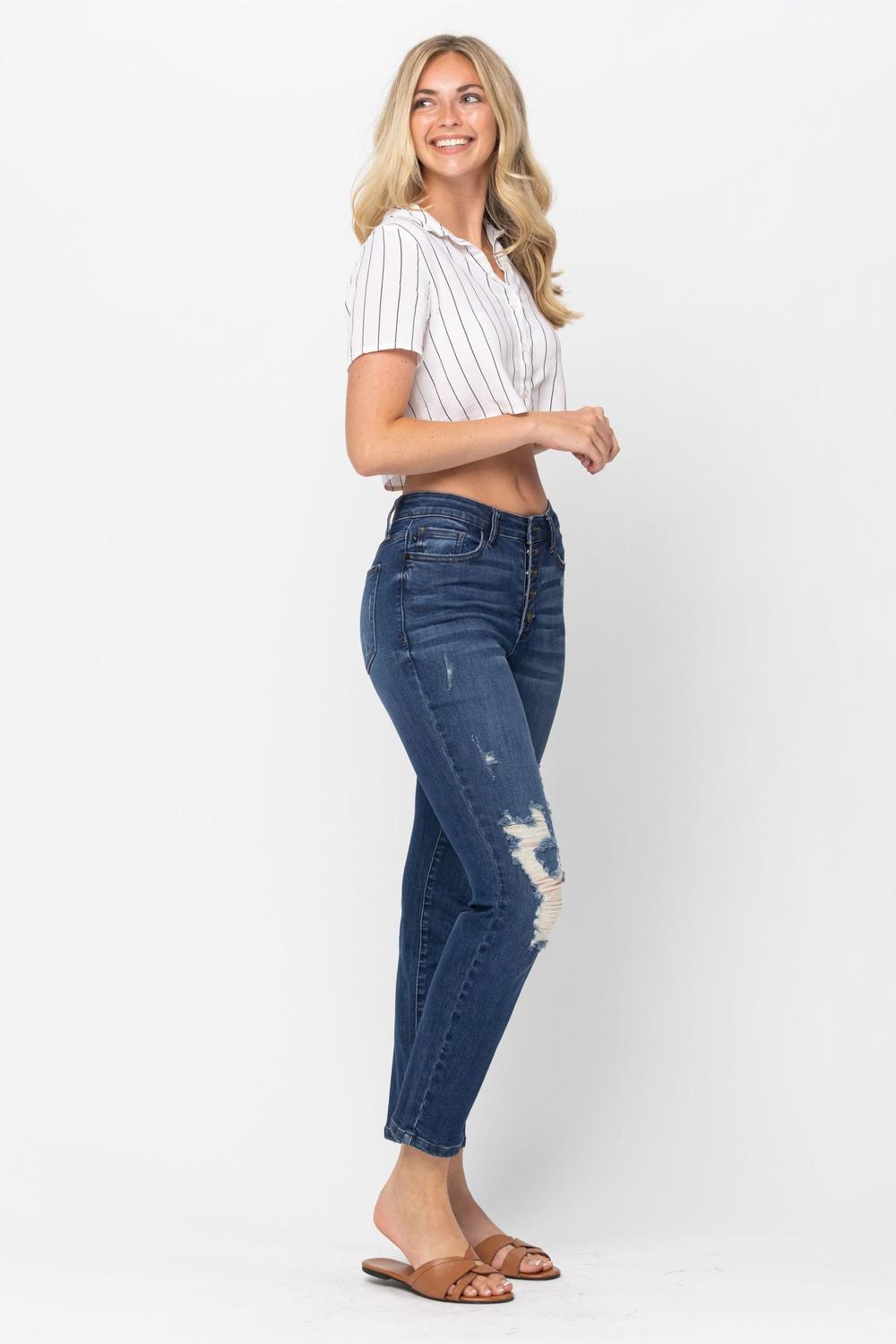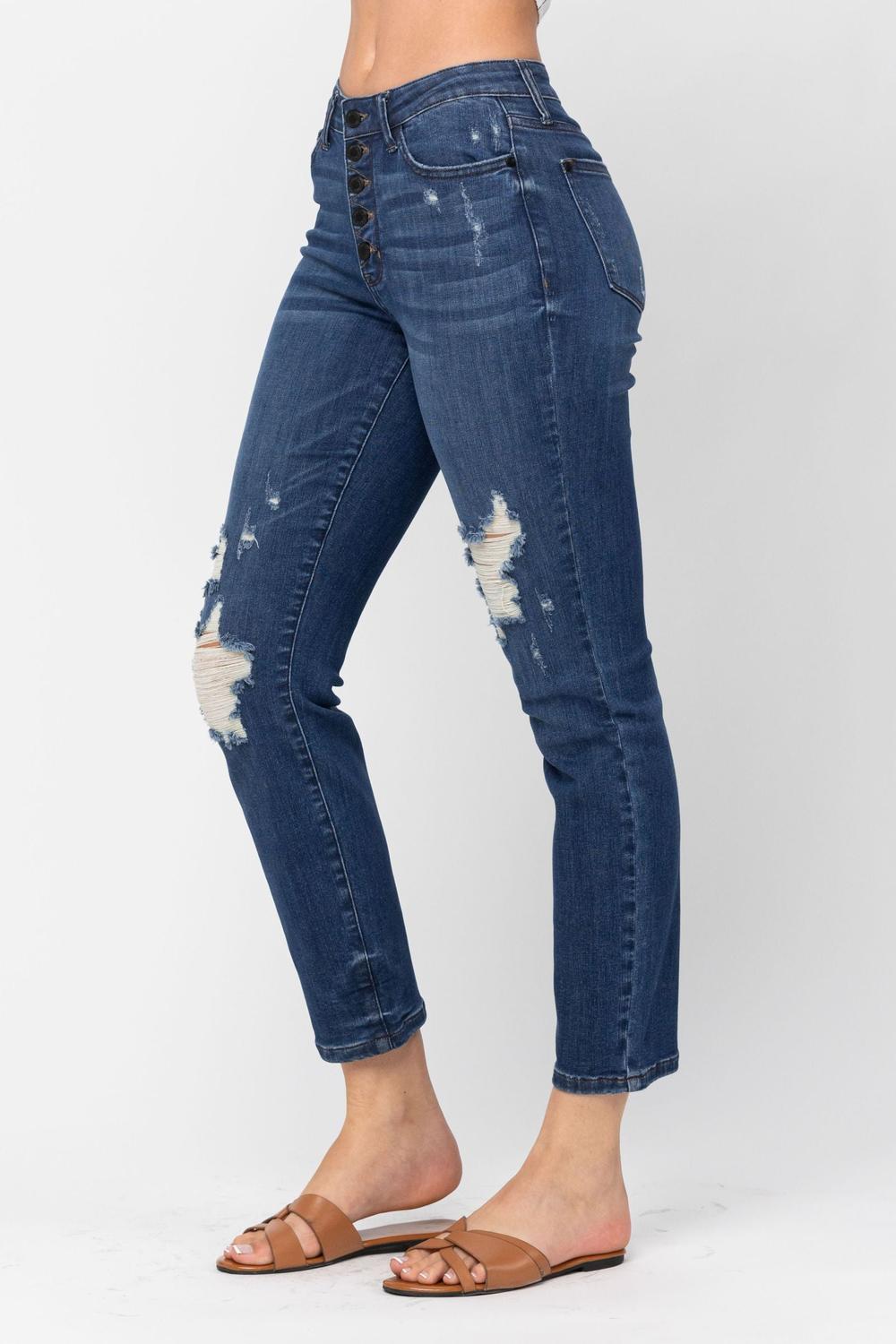 Judy Blue High Waist ZigZag Button Fly & Destroy Boyfriend Denim