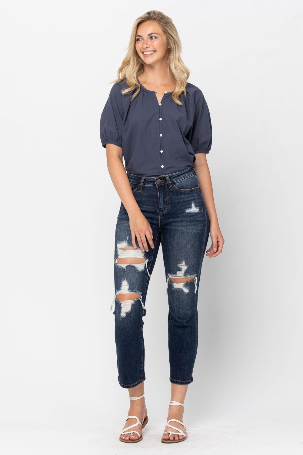 Judy Blue Mid Rise Crop Leg Straight Denim 88517