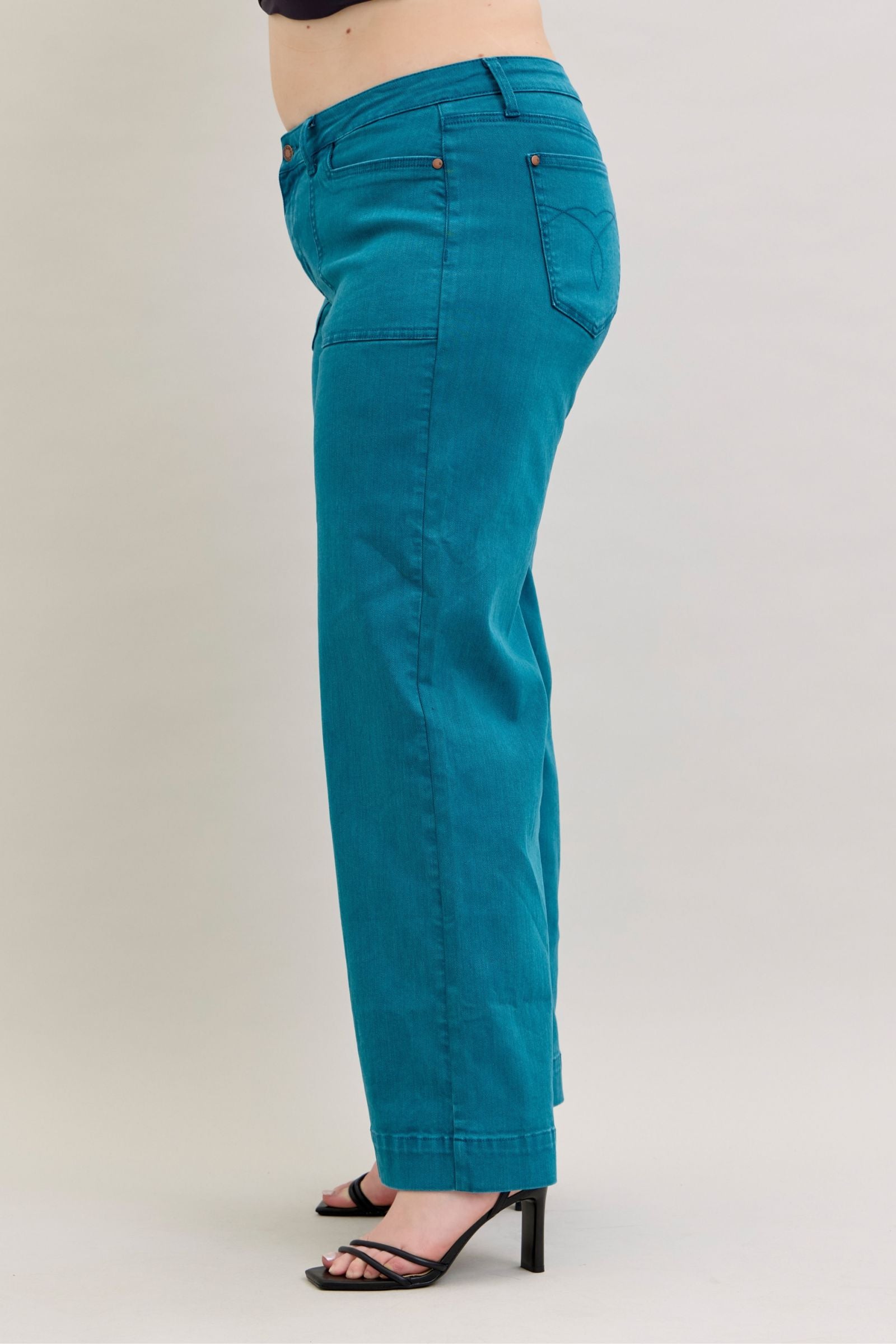 Judy Blue Mid Rise Teal Utility Wide Leg Denim Jeans