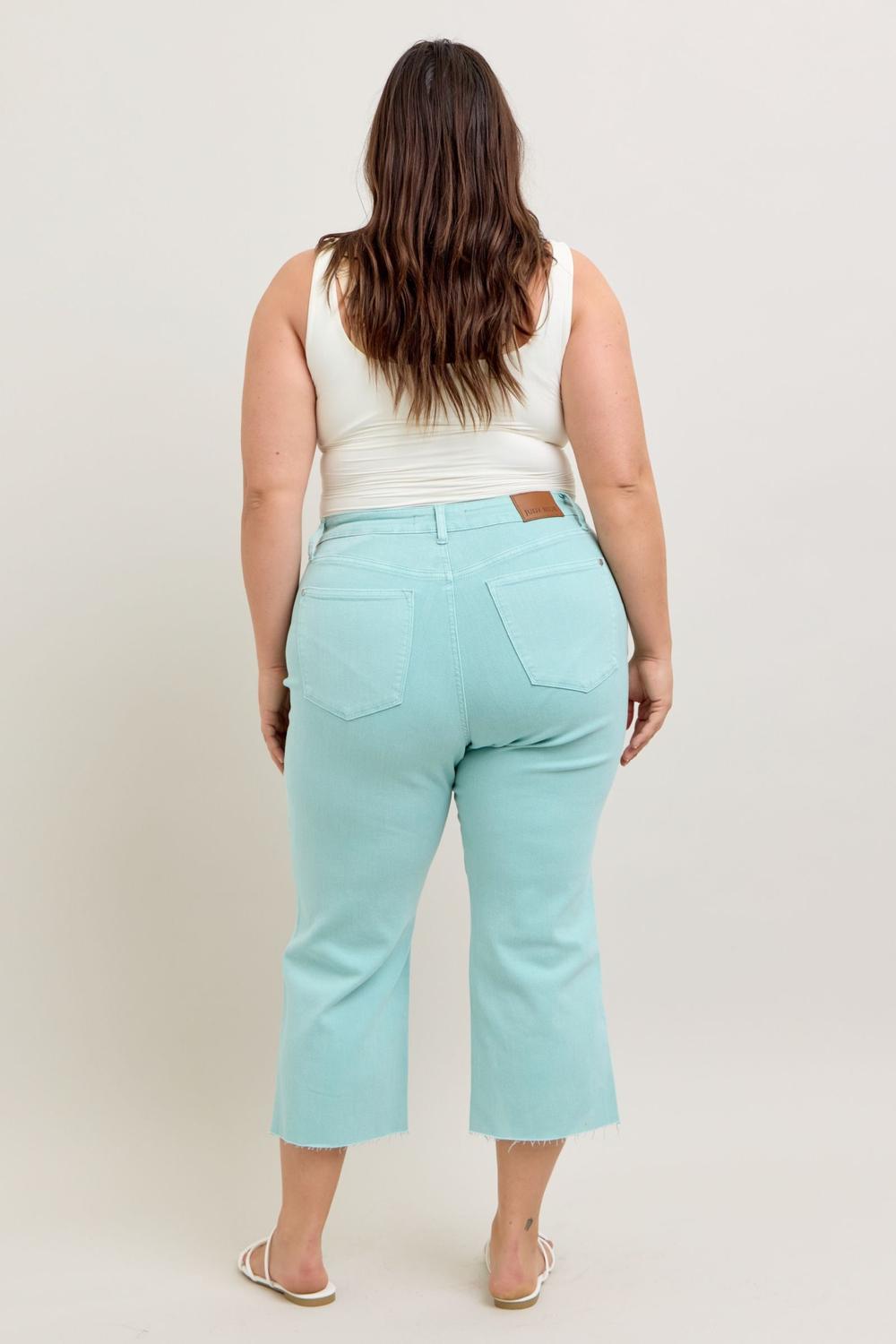 Judy Blue High Waist Garment Dyed Light Sky Blue Crop Wide Leg Denim Jeans
