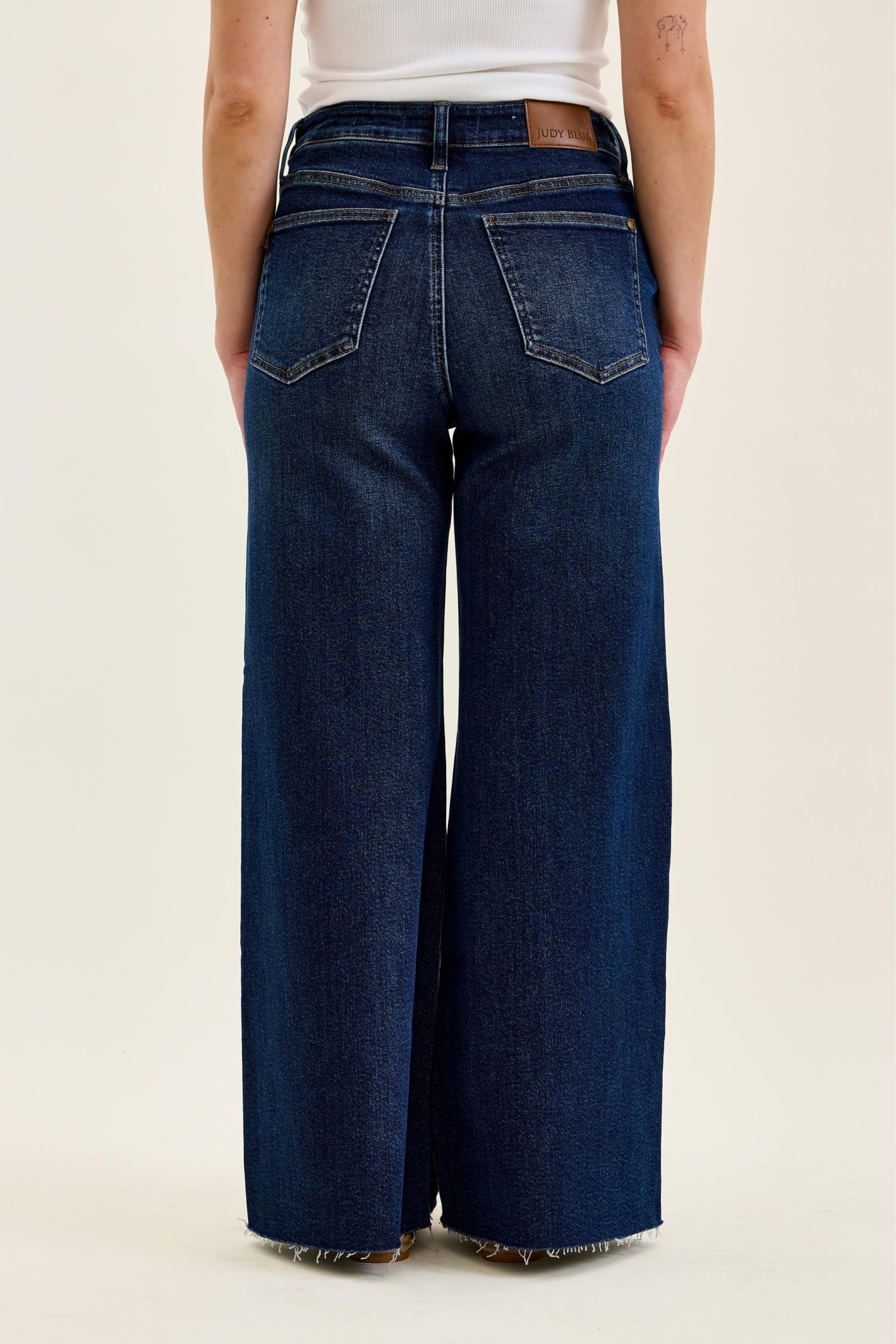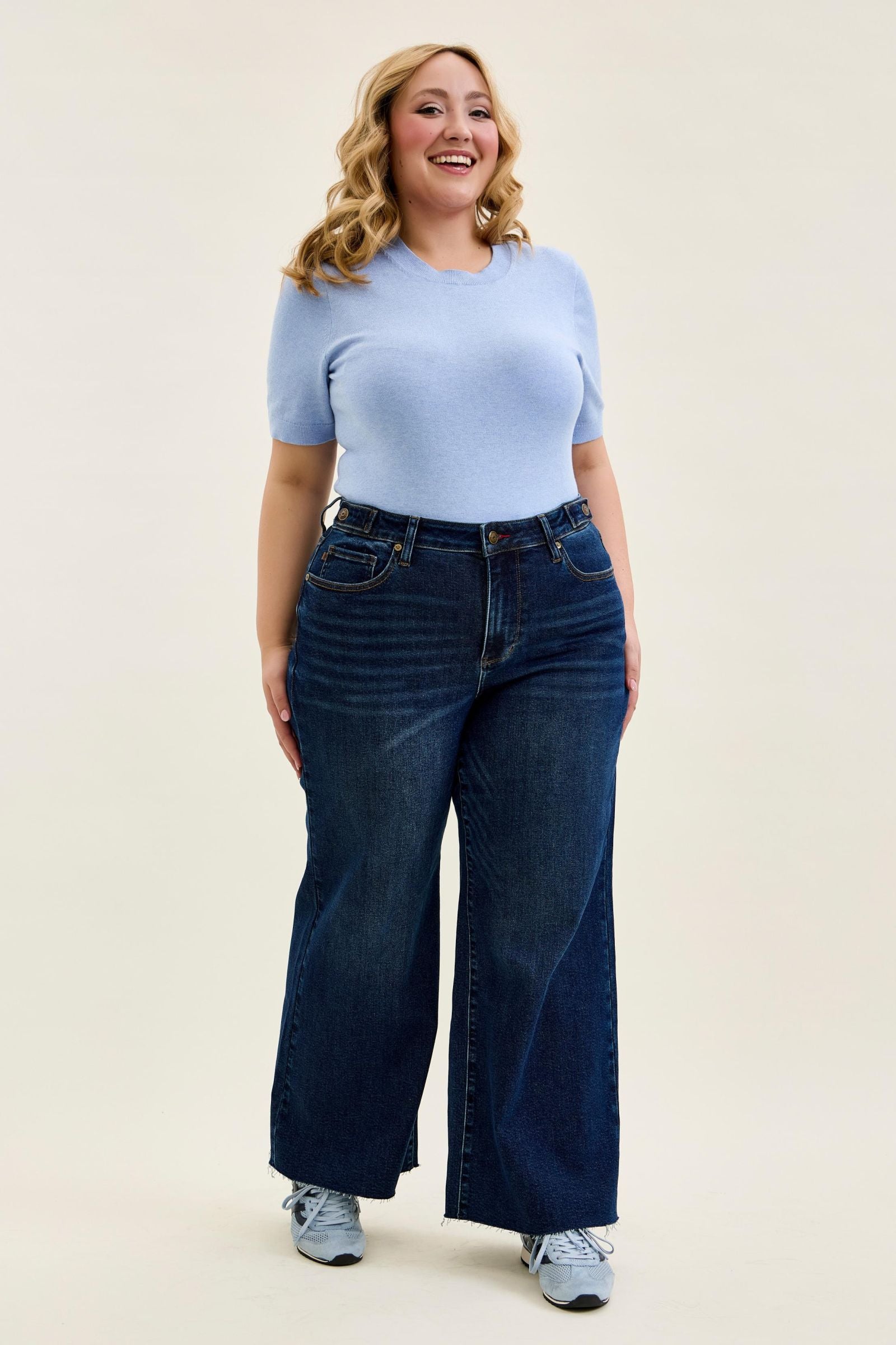 Judy Blue High Waist Adjustable Waistband Tabs Raw Hem Retro Wide Leg Denim Jeans