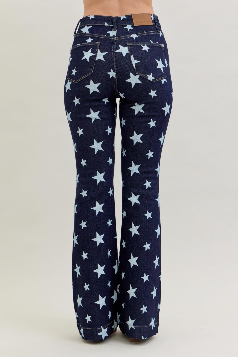 Judy Blue High Waist All Over Star Print Rinse Wash Flare Denim
