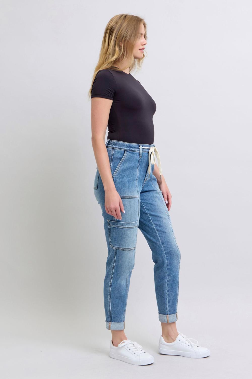 Judy Blue High Waist Cargo Cuff Jogger Denim Jeans