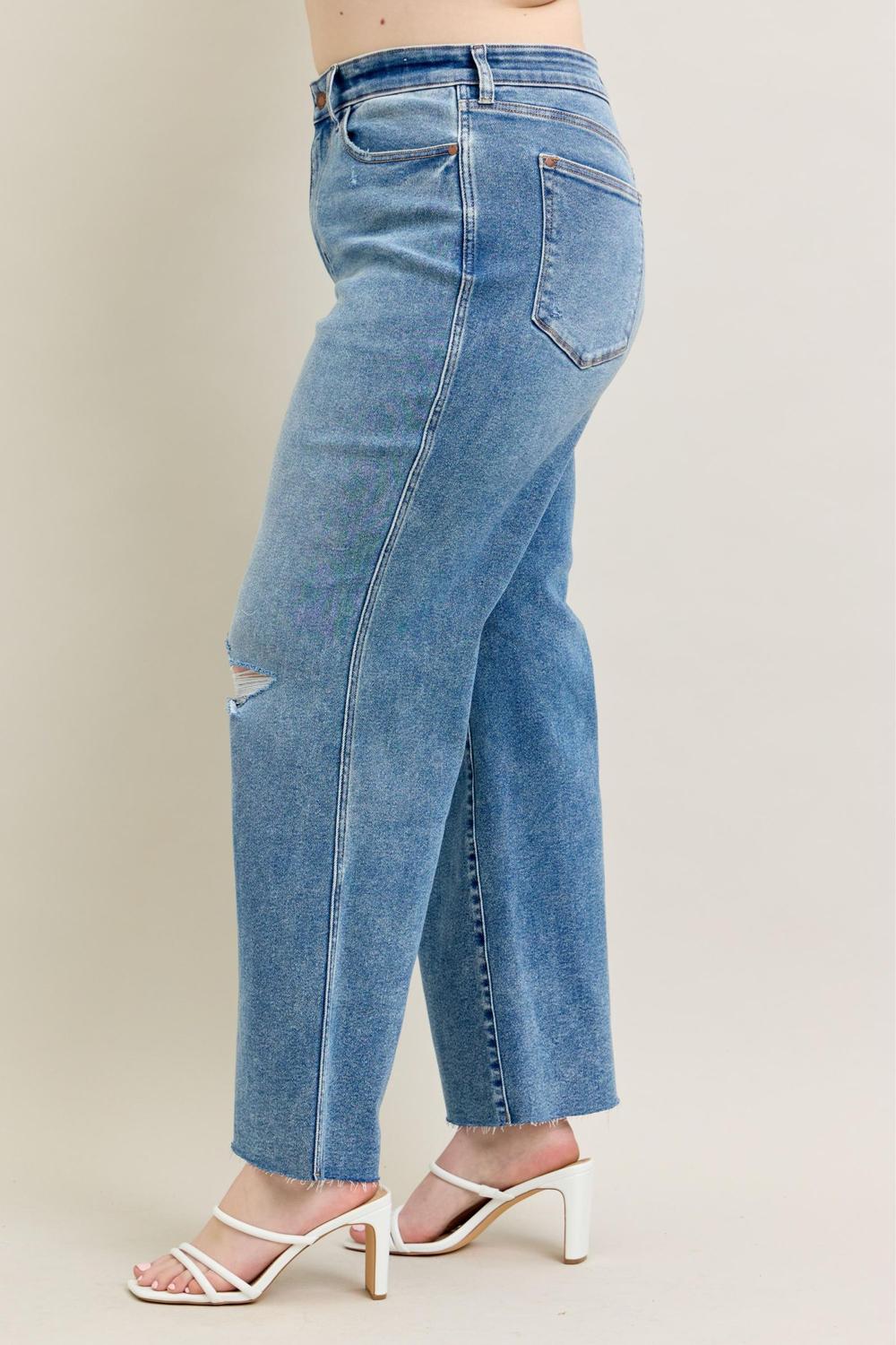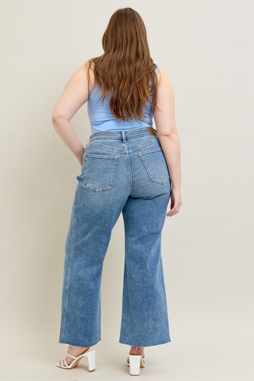 Step into bold, effortless style with these vintage wash wide leg jeans from Judy Blue. Featuring a high waist, a relaxed wide-leg silhouette, and destroyed detailing, these jeans are the perfect mix of edgy and chic. Whether you dress them up with heels or keep it casual with sneakers, they’ll be your new go-to statement denim.