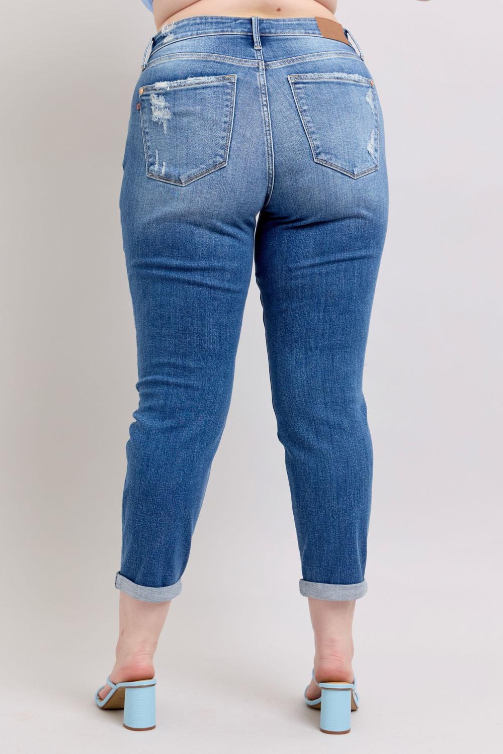 Judy Blue Mid Rise Button-Fly Destroy Boyfriend Denim Jeans 82664