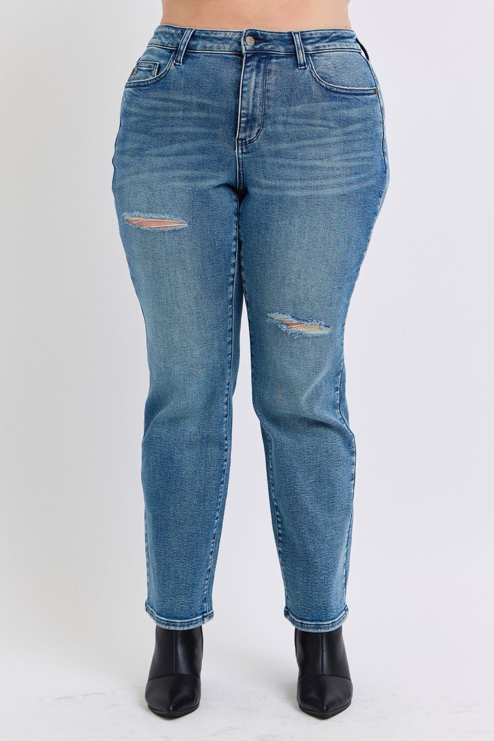Judy Blue Mid Rise Contrast Wash Destroyed Dad Denim Jeans
