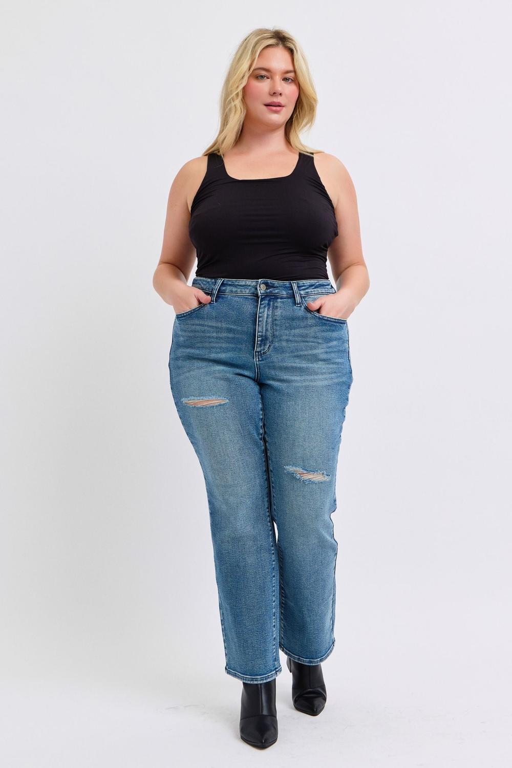 Casual and effortlessly cool — the Judy Blue Mid Rise Contrast Wash Destroyed Dad Jeans are the perfect blend of vintage-inspired style and everyday comfort. Designed with a relaxed dad fit and soft contrast wash, these jeans feature subtle destruction for that perfectly worn-in look. The mid-rise waist offers easy comfort, while Judy Blue’s signature stretch denim keeps you feeling relaxed yet put-together all day long.