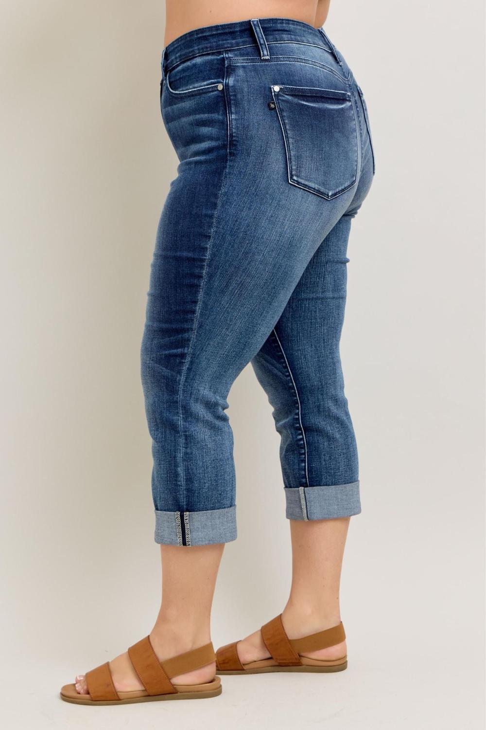 With their dark wash finish, versatile cuffed hem, and comfortable stretch, these Judy Blues are the perfect everyday capris to keep you stylish all season long.