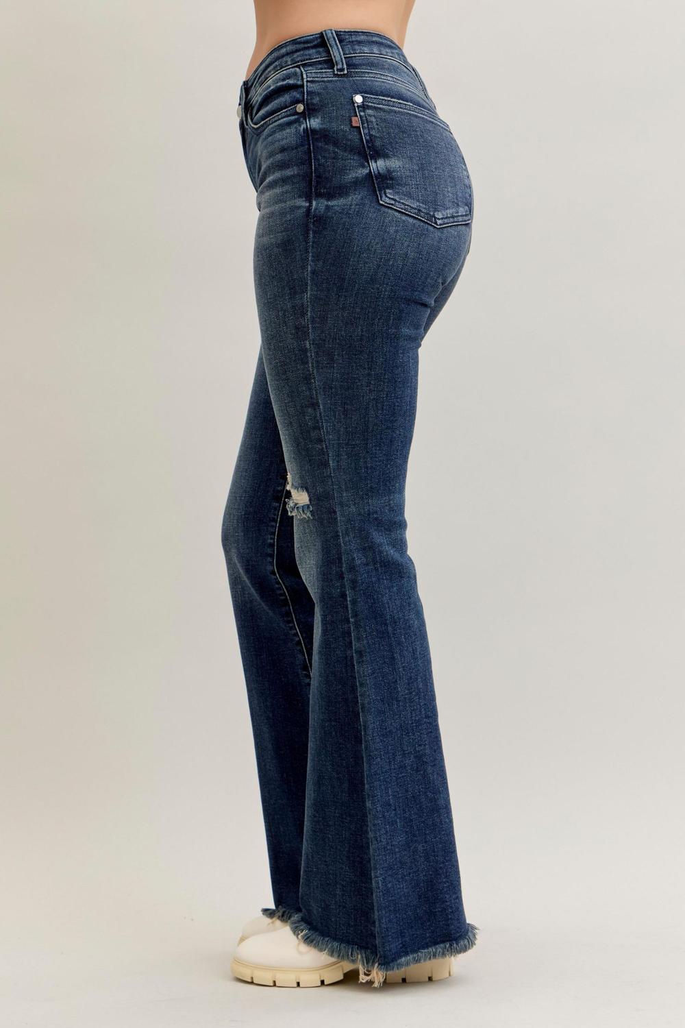 Judy Blue Mid Rise Destroy & Fray Hem Tall/Long Flare Denim Jeans
