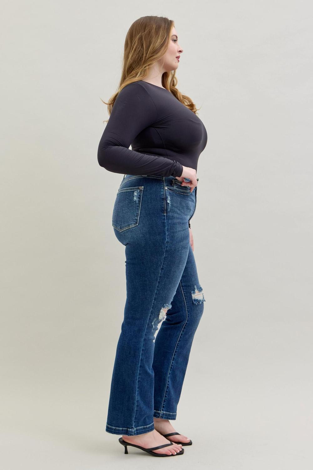 Judy Blue Mid Rise Hand Sand & Destroy Bootcut Denim