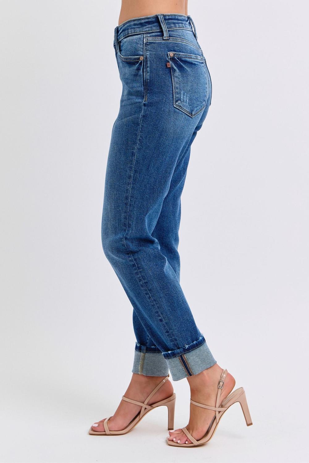 Judy Blue Mid Rise Vintage Wash Boyfriend Denim Jeans 82624