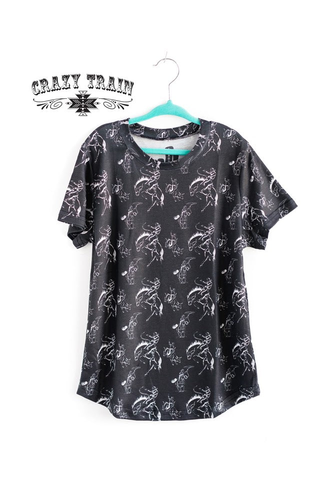 • Black tee with bucking horse design