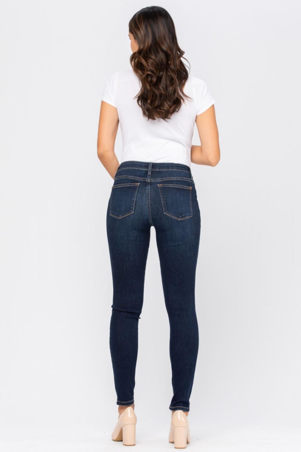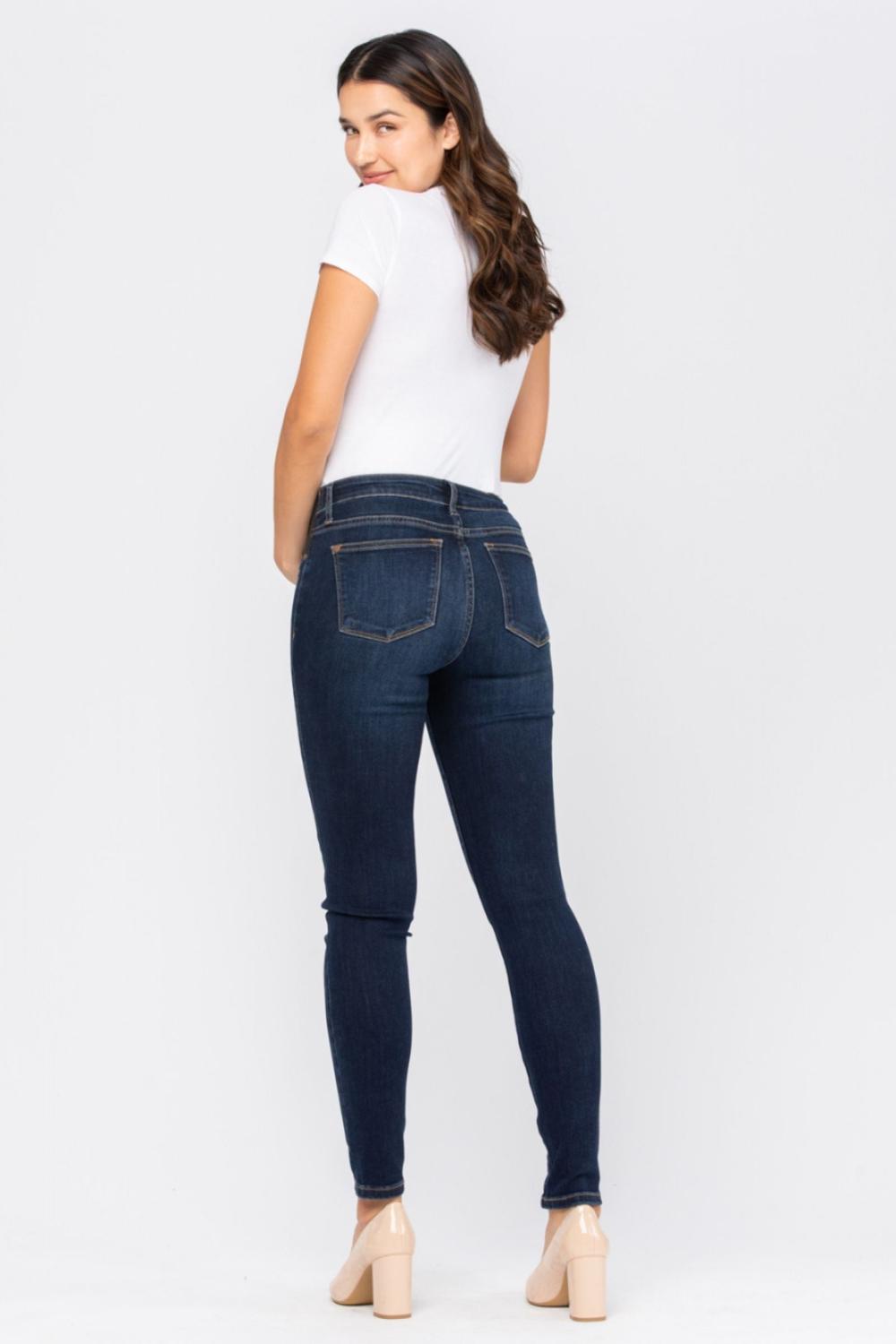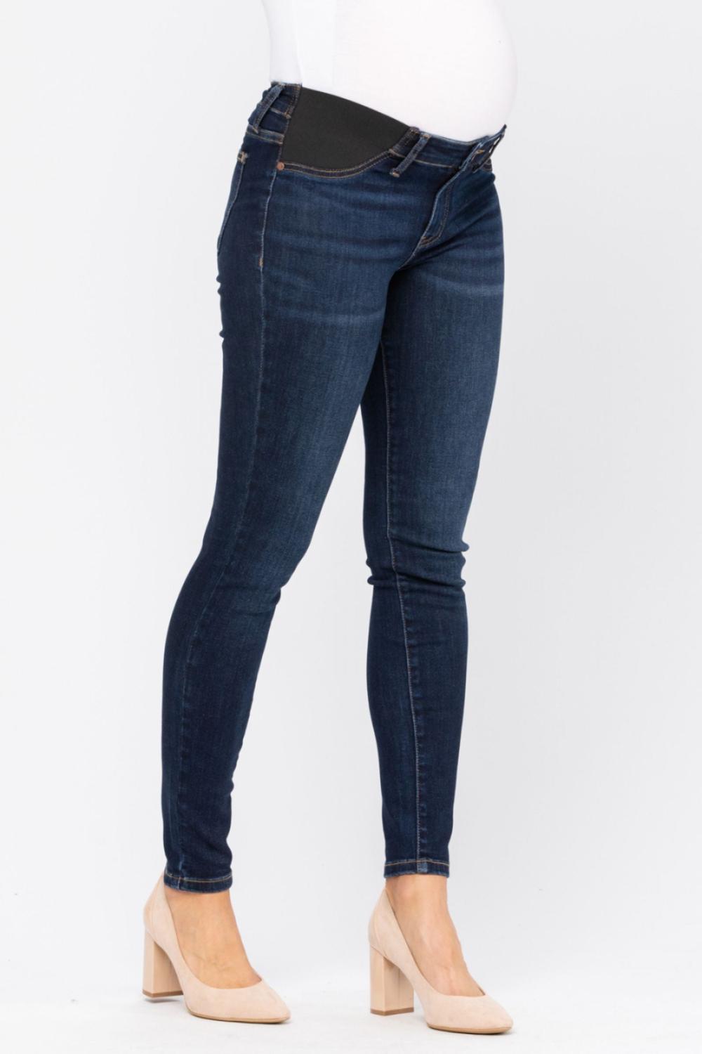 Stay stylish and comfortable throughout your pregnancy with Judy Blue’s maternity destroyed skinny jeans. Designed with elastic side panels for stretch and support, these jeans adapt with you as your bump grows. The trendy destroyed details and dark wash keep your look modern and versatile—perfect for pairing with tees, sweaters, or maternity tops.