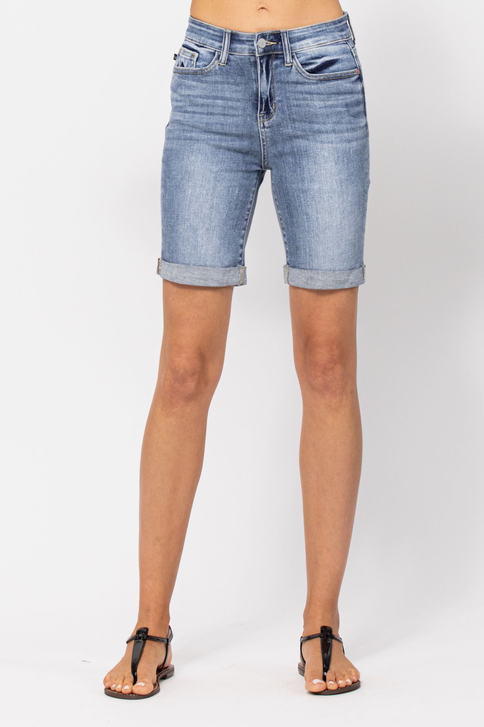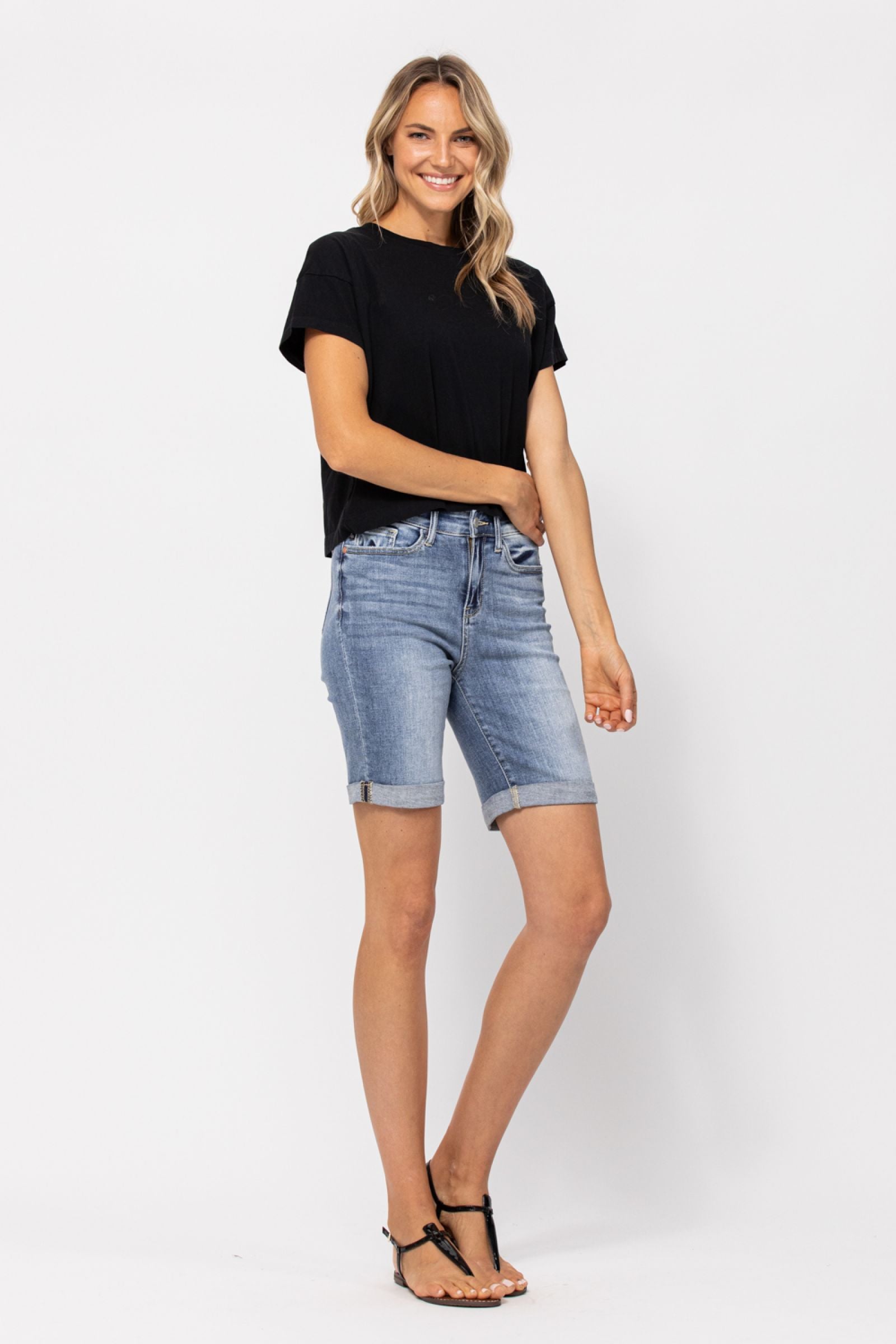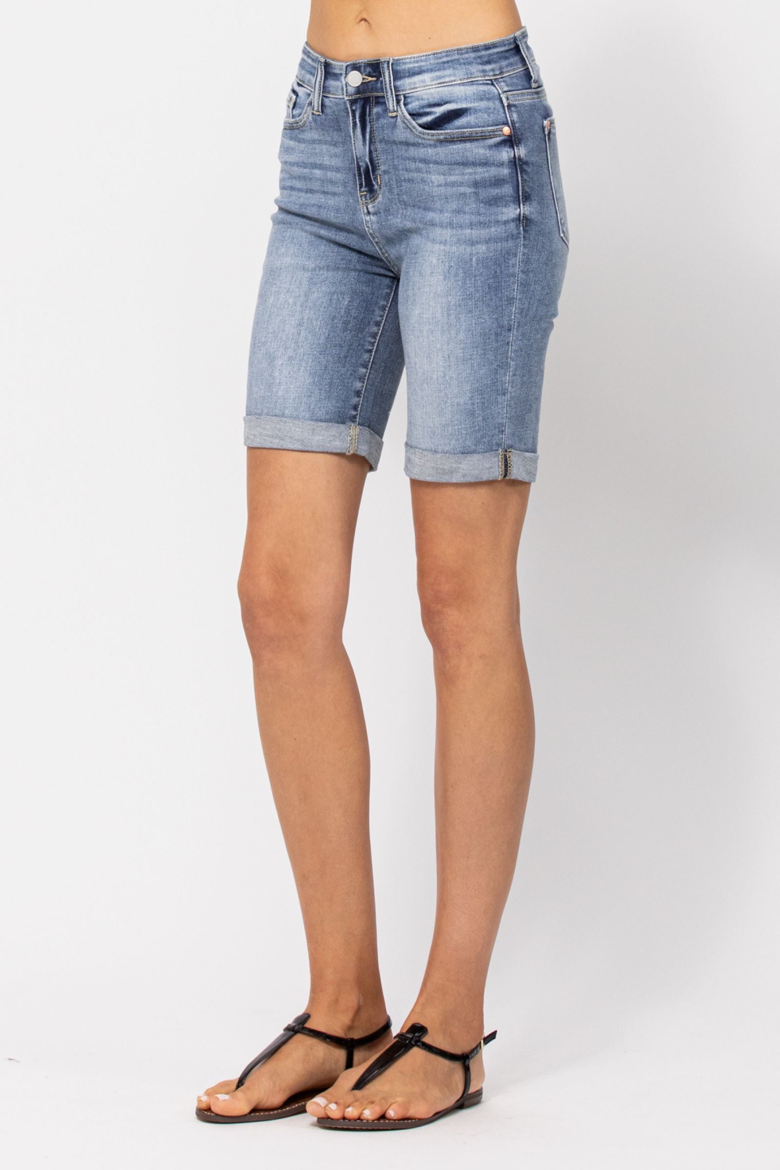 Judy Blue High Waist Bermuda Cuffed Denim Short 15226