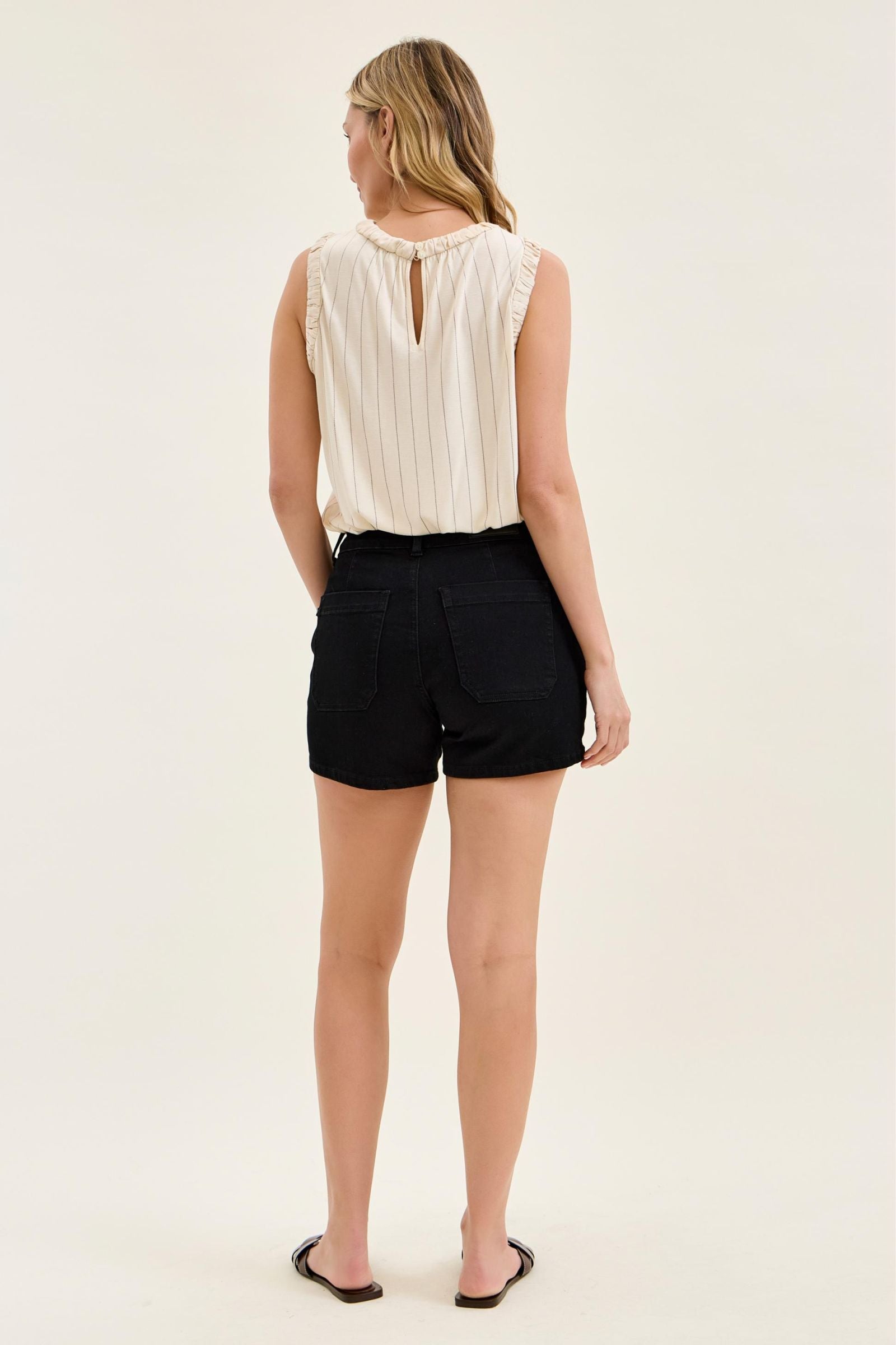 A dressier take on your everyday denim—these black trouser-style shorts are effortlessly polished while still keeping that comfortable Judy Blue feel. The high waist and double button closure create a flattering, secure fit that smooths and holds in all the right places.