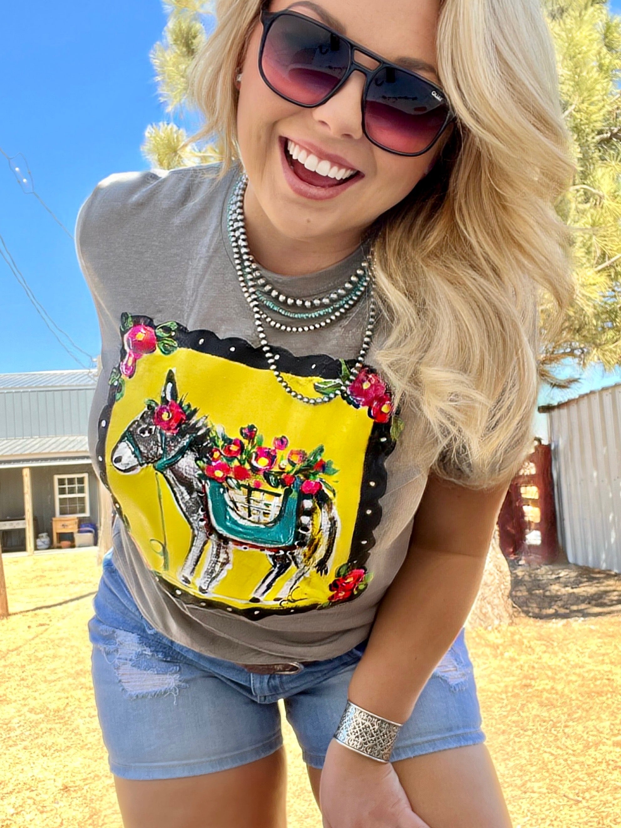 Texas True Threads Callie Ann Stelter Hand Painted Burro Tee