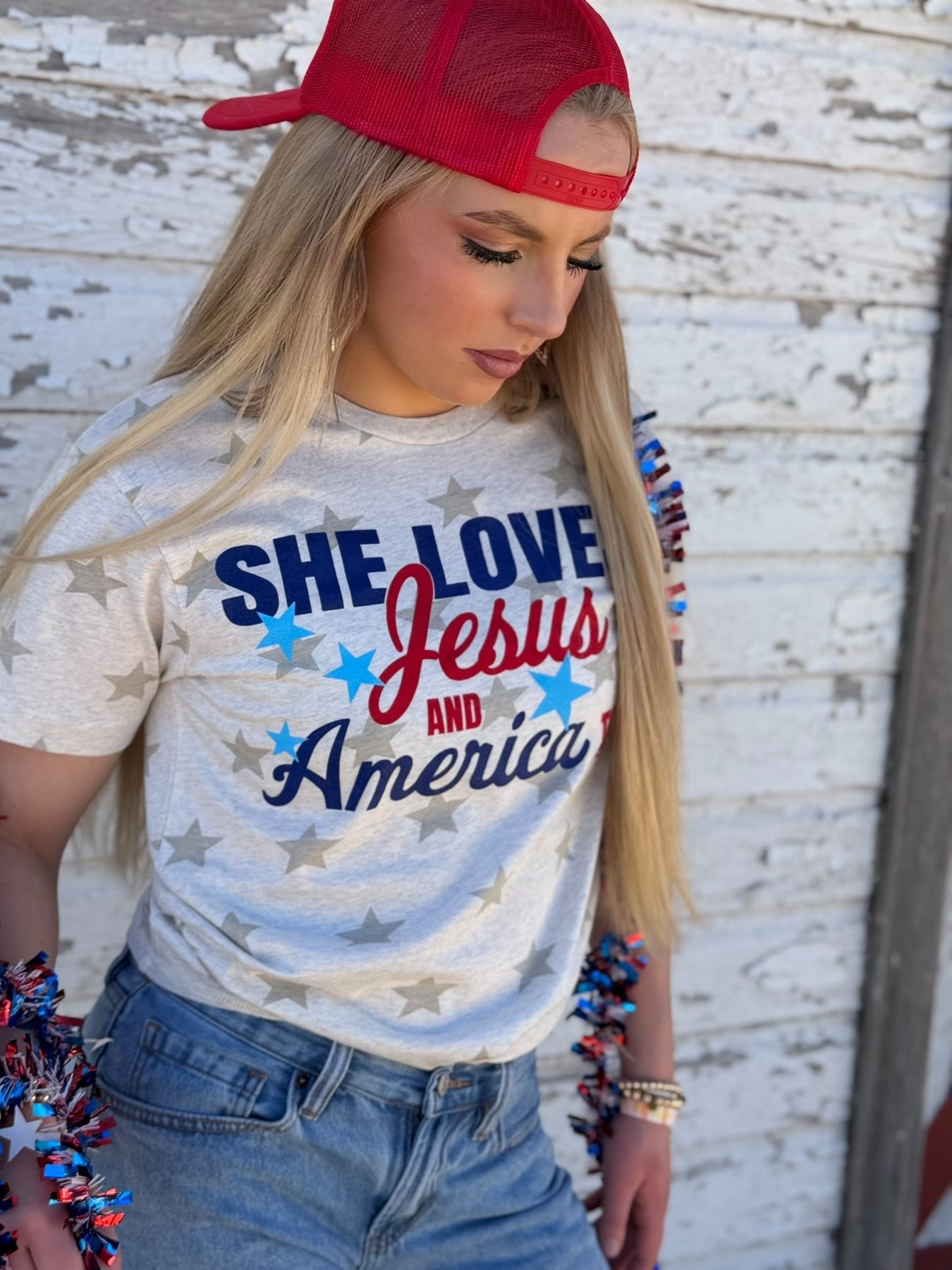 Texas True Threads She Loves Jesus & America Too Tee