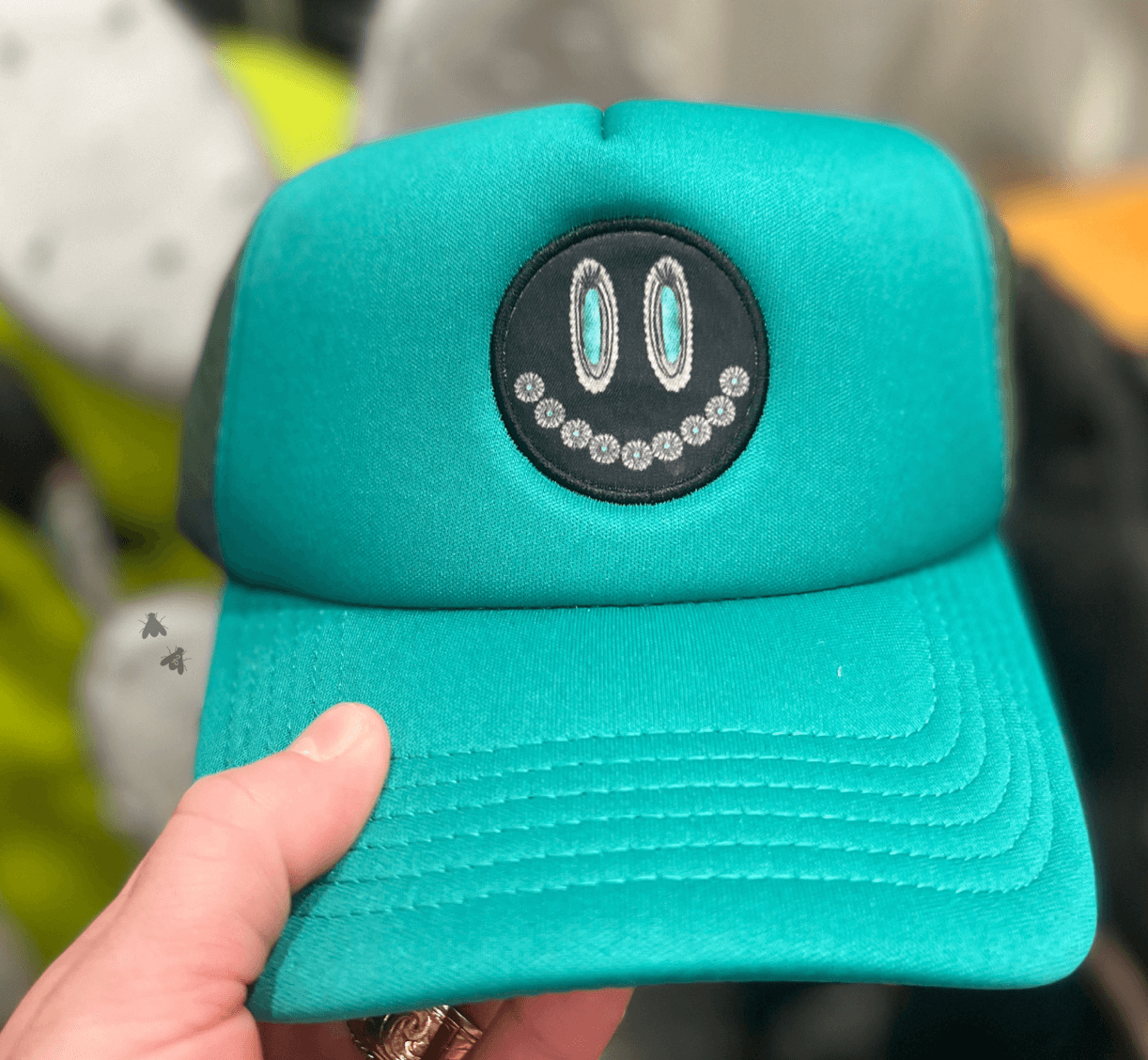 2 Fly Turquoise Glam Grin Ponytail Mesh Trucker Hat