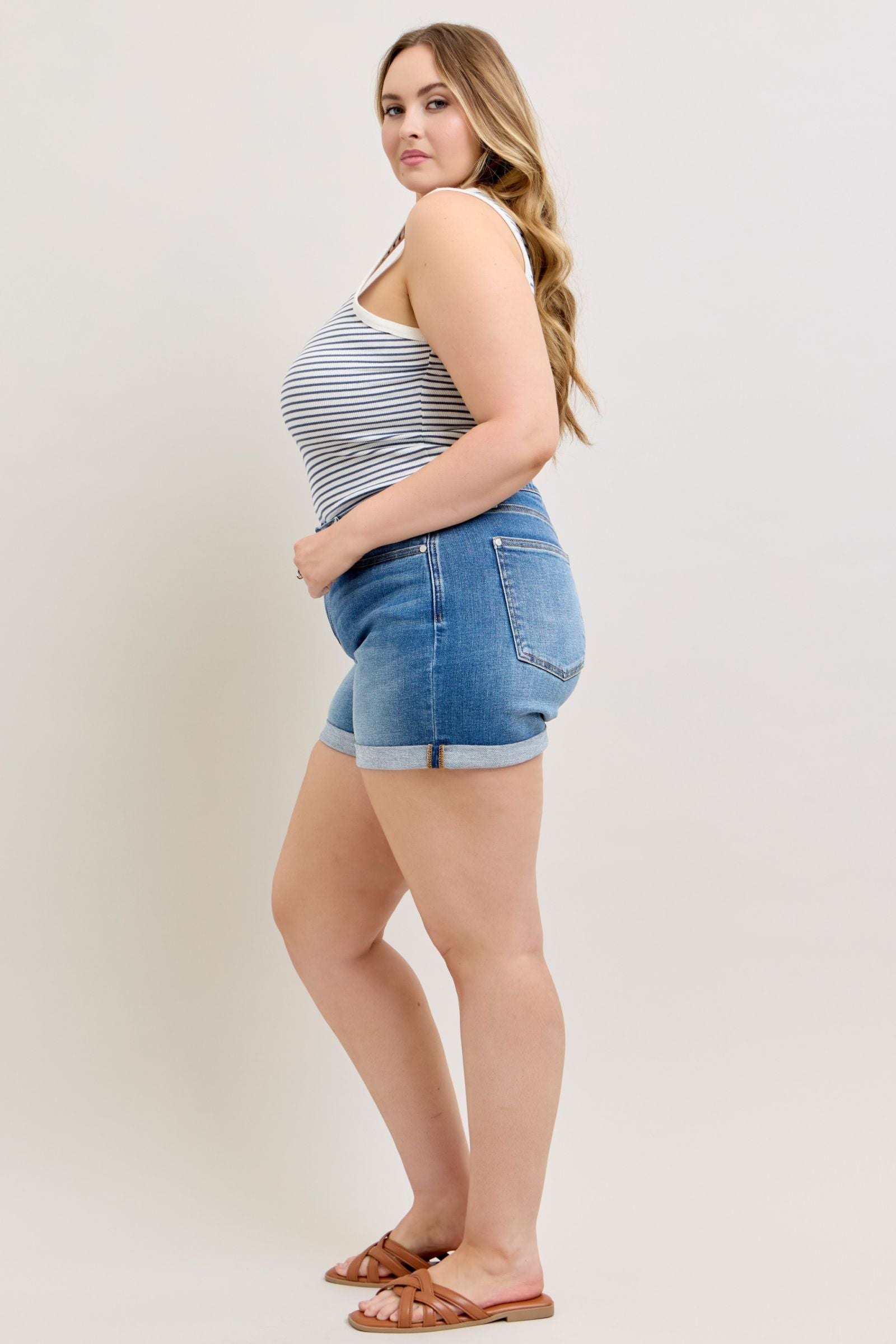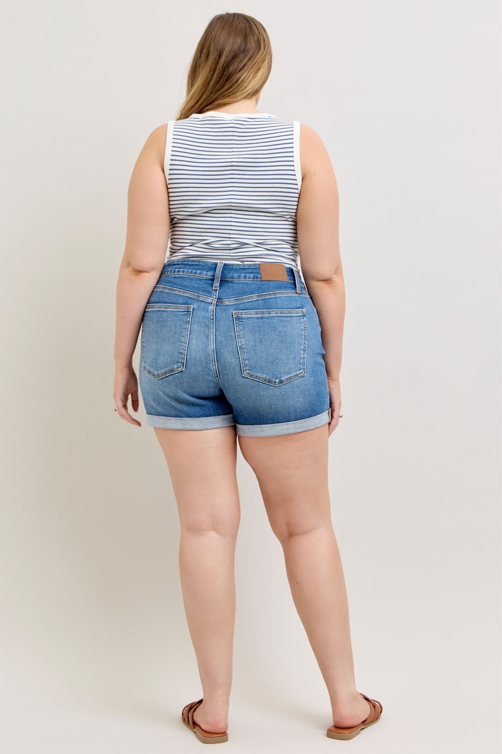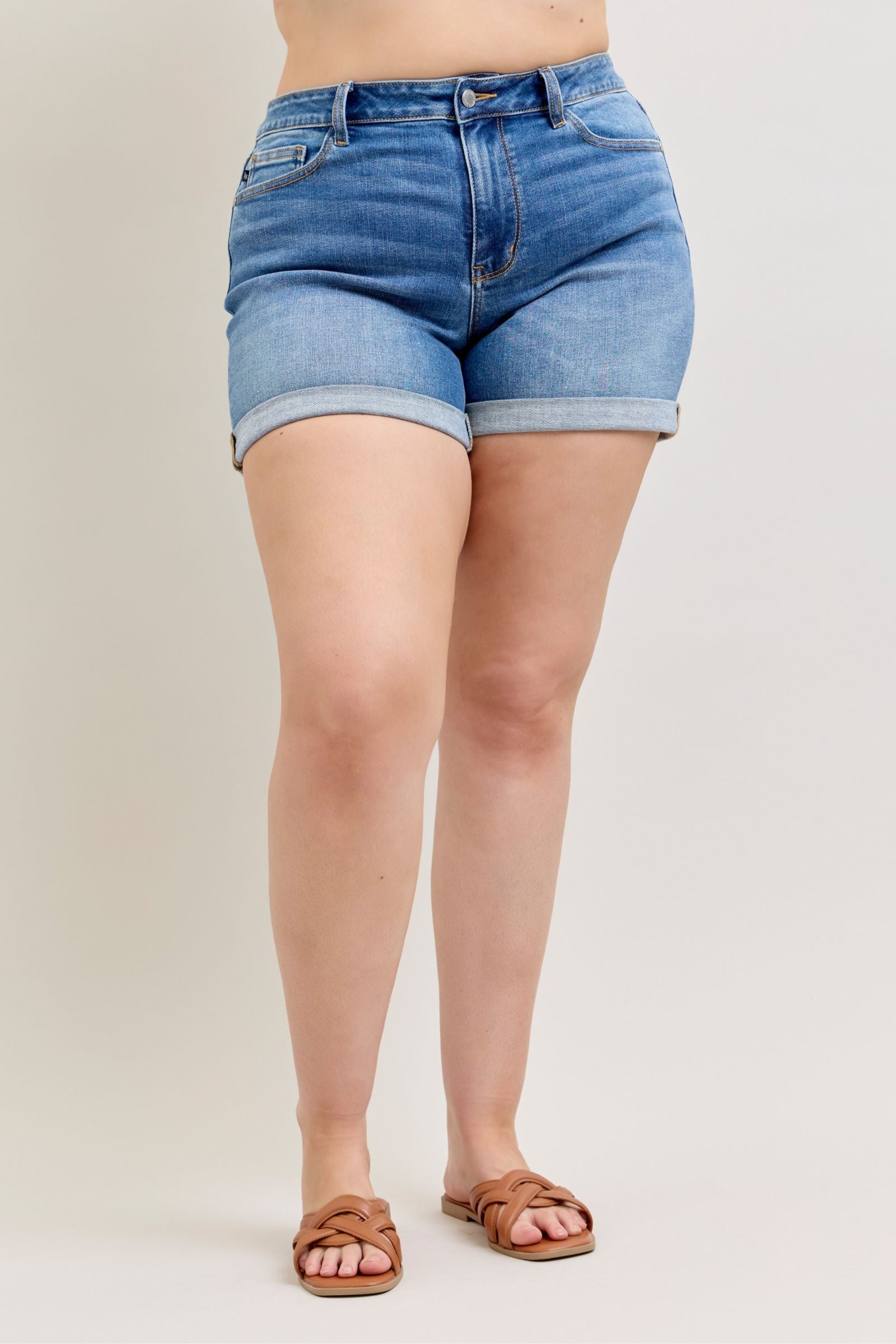 Designed in a versatile medium wash with a trendy cuffed hem, these shorts offer a polished look while still keeping that laid-back denim feel. Finished with Judy Blue’s signature stretch, they move with you and keep their shape all day.