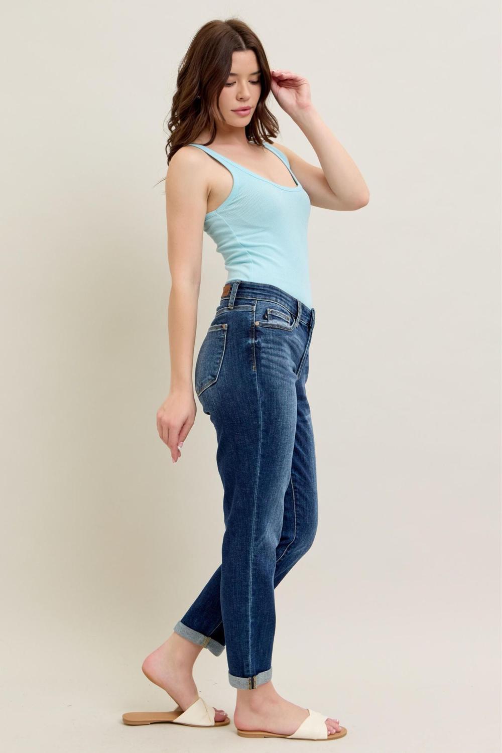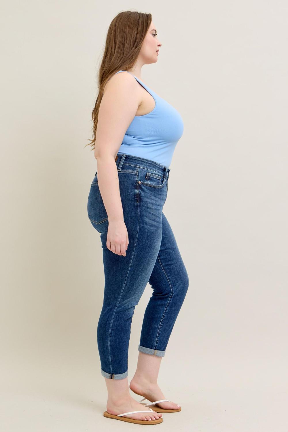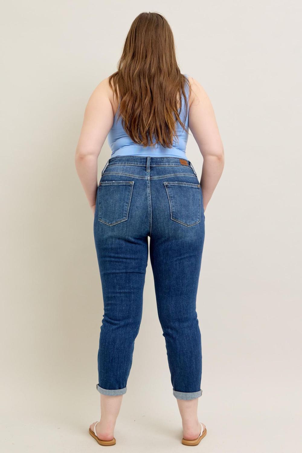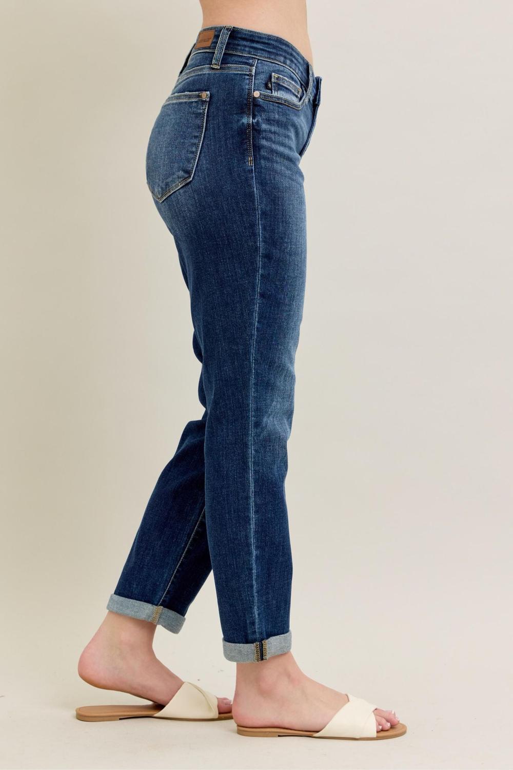 Judy Blue Basic Mid-Rise Cuffed Slim Jeans (Style JB82428)