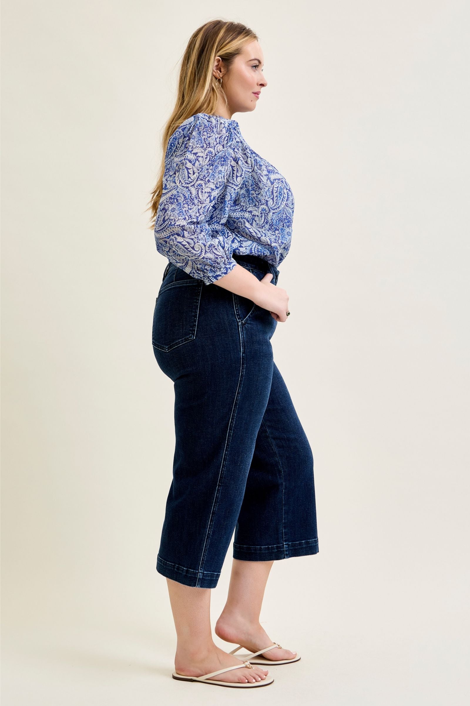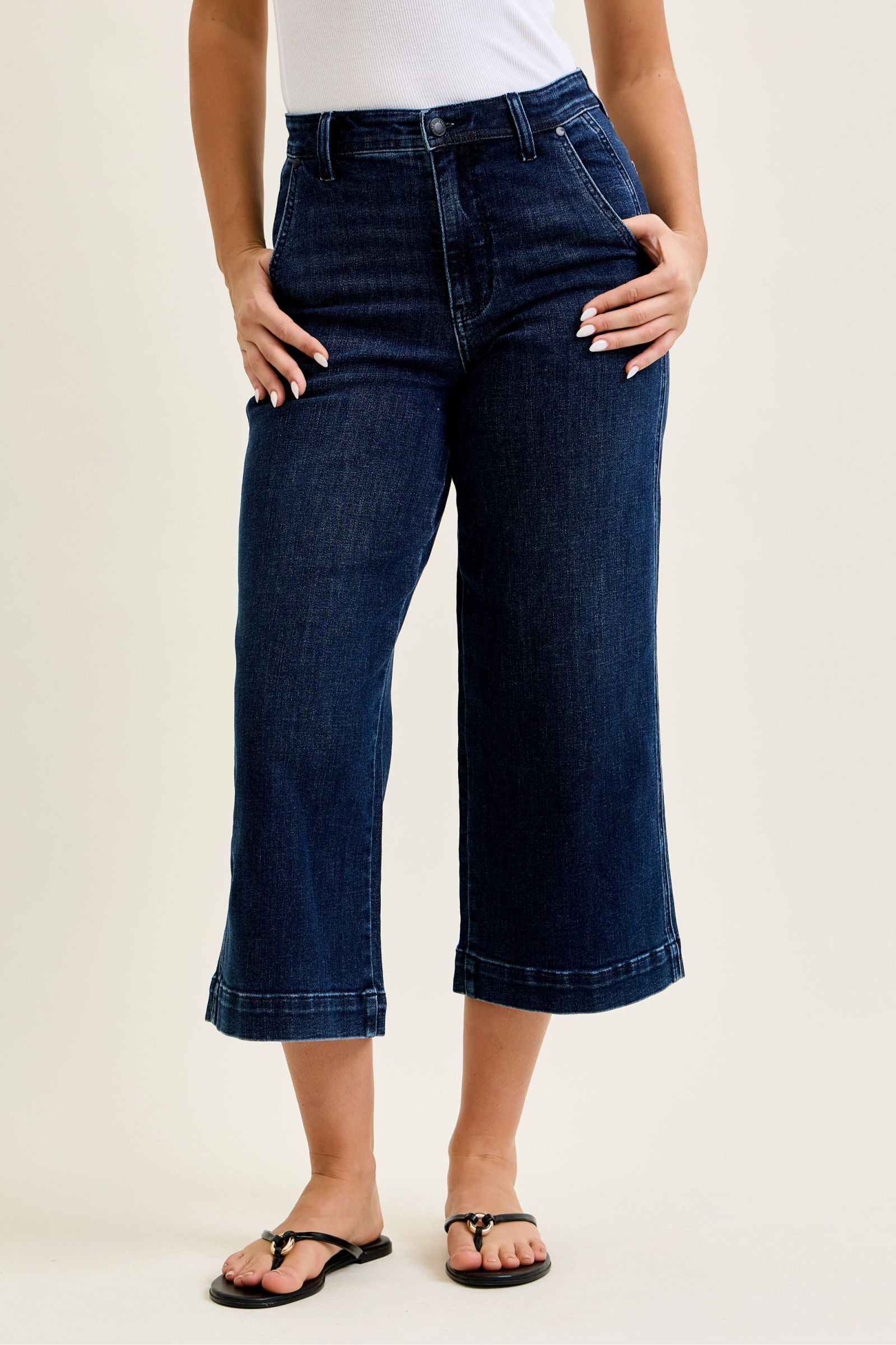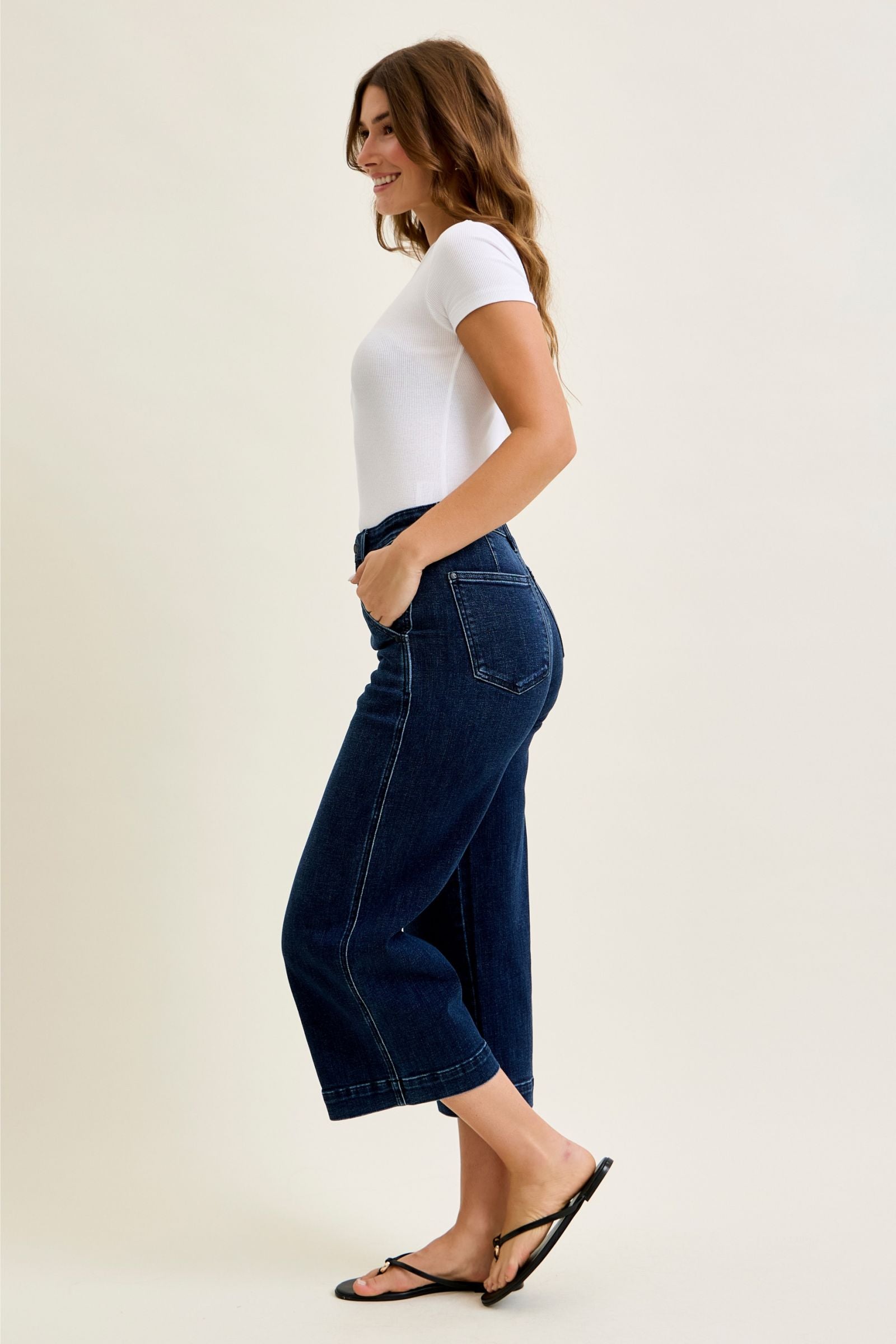 Clean, polished, and effortlessly flattering—these ankle wide leg jeans are a must-have for an elevated everyday look. The high waist gives you that smooth, held-in feel, while the wide leg silhouette creates a modern, on-trend shape that’s easy to style.