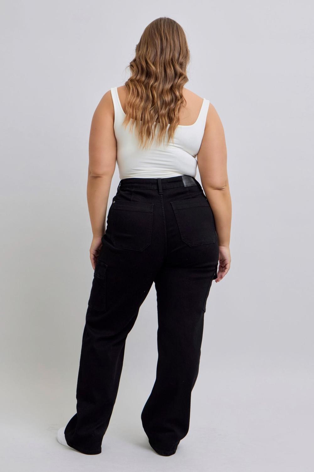 Judy Blue High Waist Cargo Wide Leg Black Denim Jeans