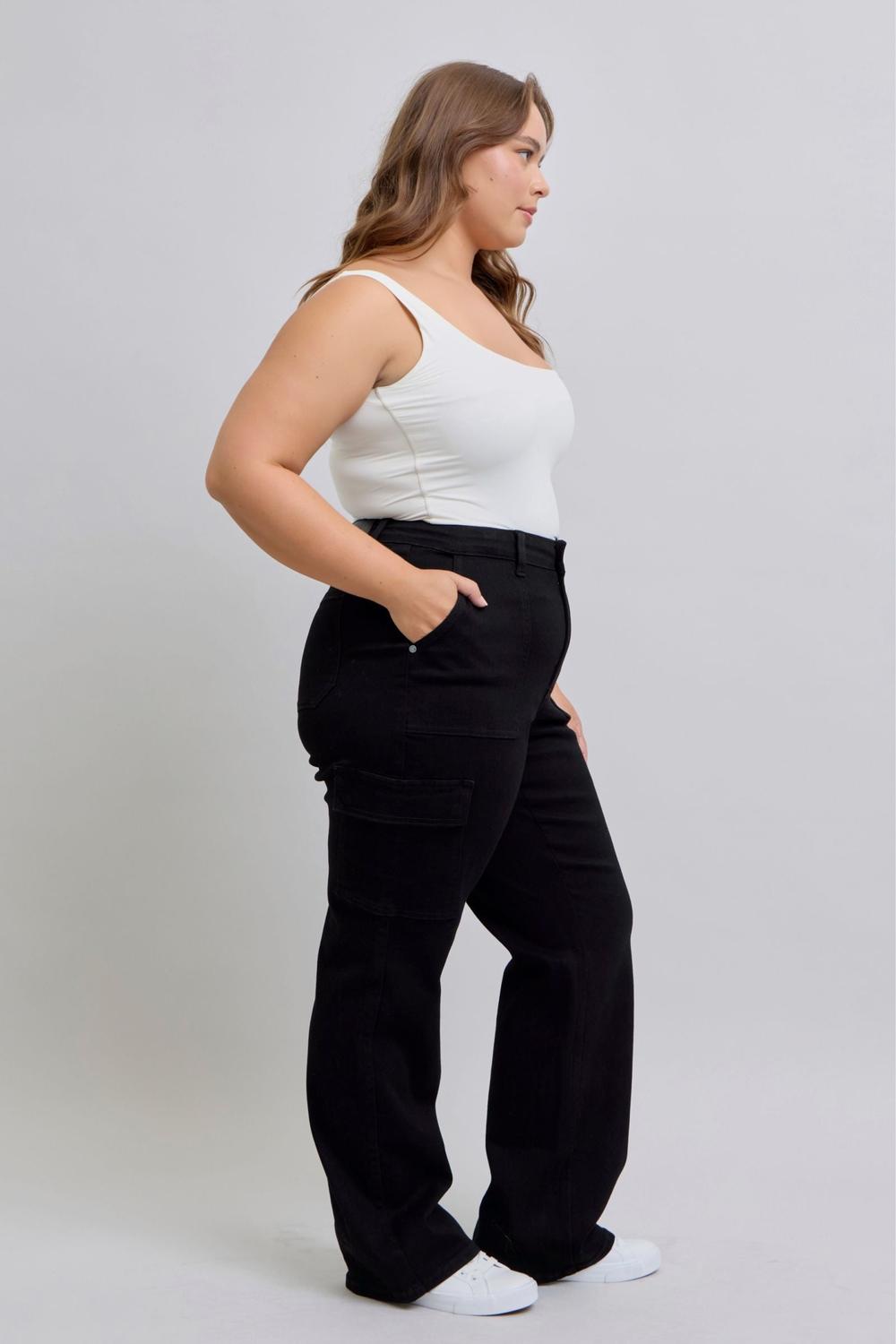 Effortlessly combine utility and style with the Judy Blue High Waist Cargo Wide Leg Jeans in black. These jeans bring together the structure of classic cargo design with Judy Blue’s signature stretch and comfort. The flattering high-rise fit and wide leg silhouette create a modern, elongated look that transitions seamlessly from casual to elevated. Functional cargo pockets add a touch of practicality without sacrificing style — a perfect staple for any season.