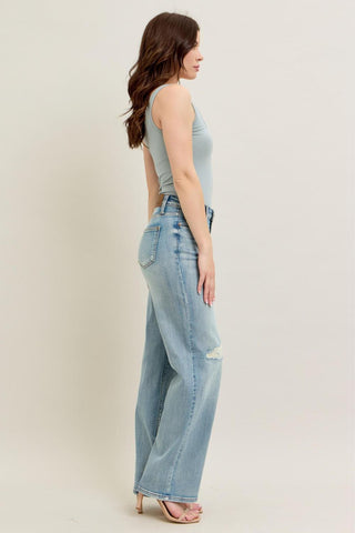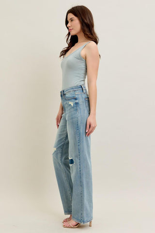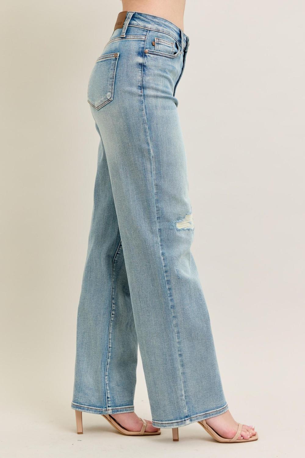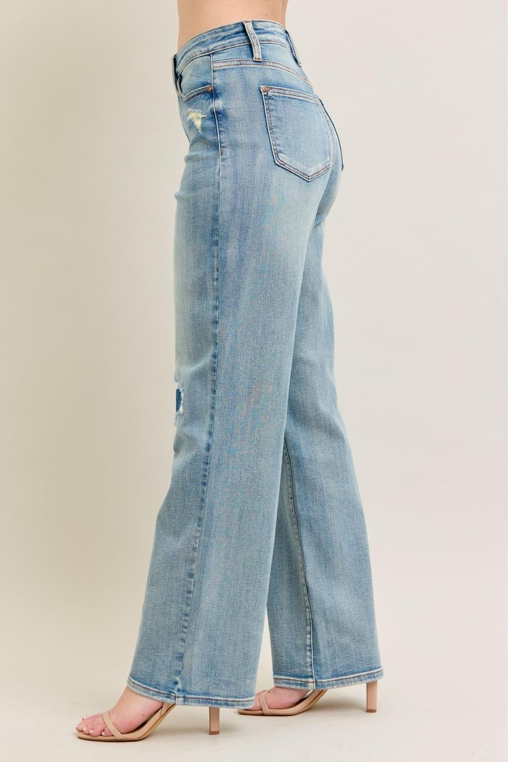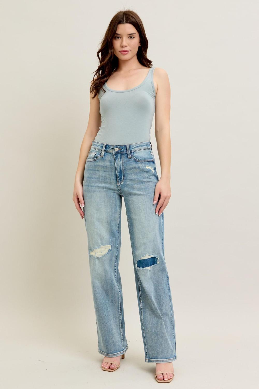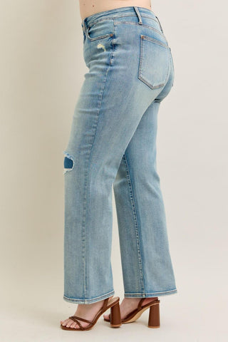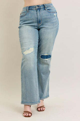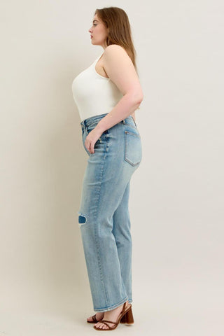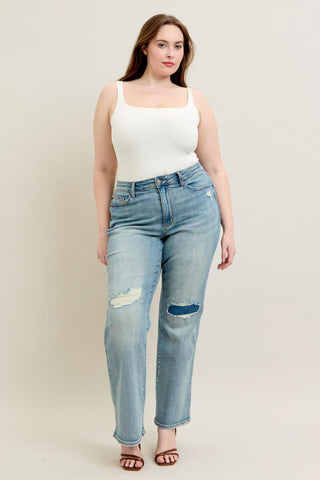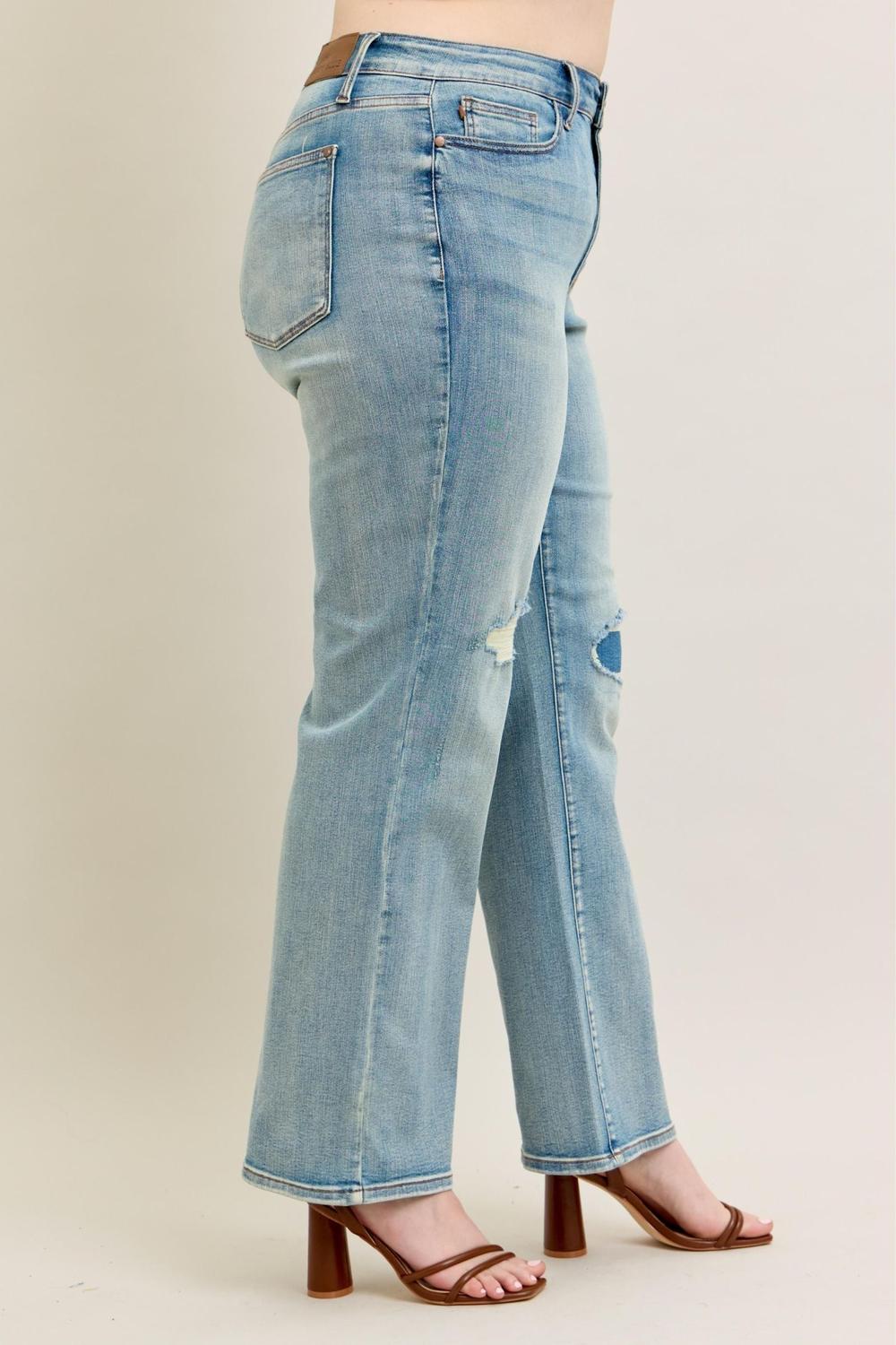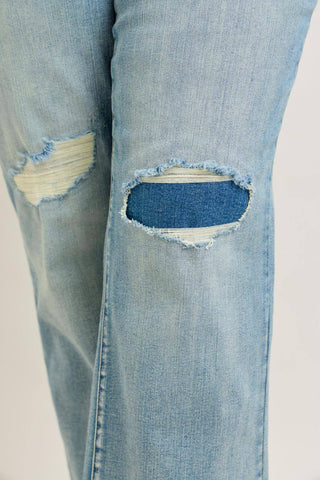 Judy Blue High Waist Destroy & Knee Patch Straight Denim Jeans