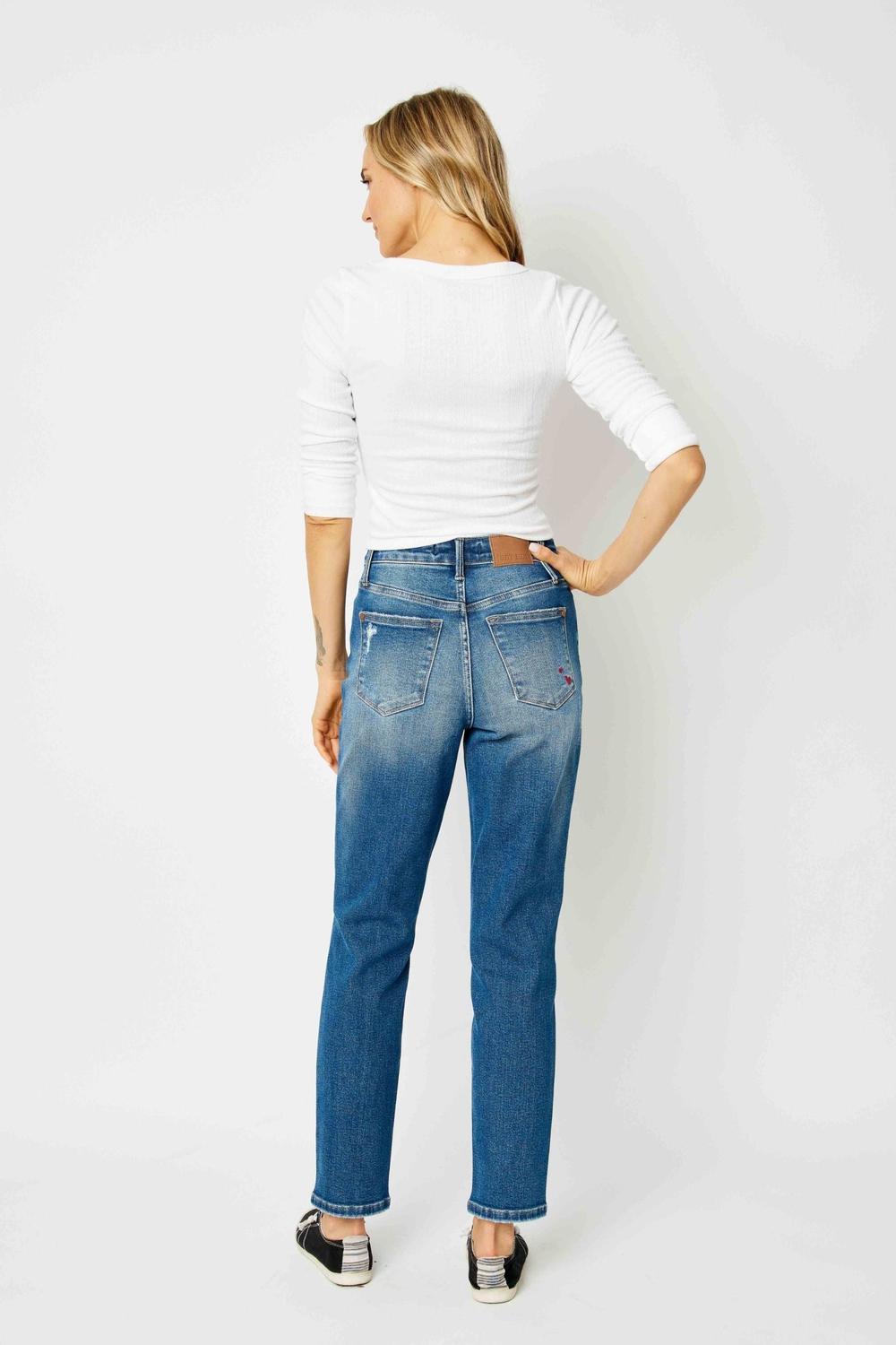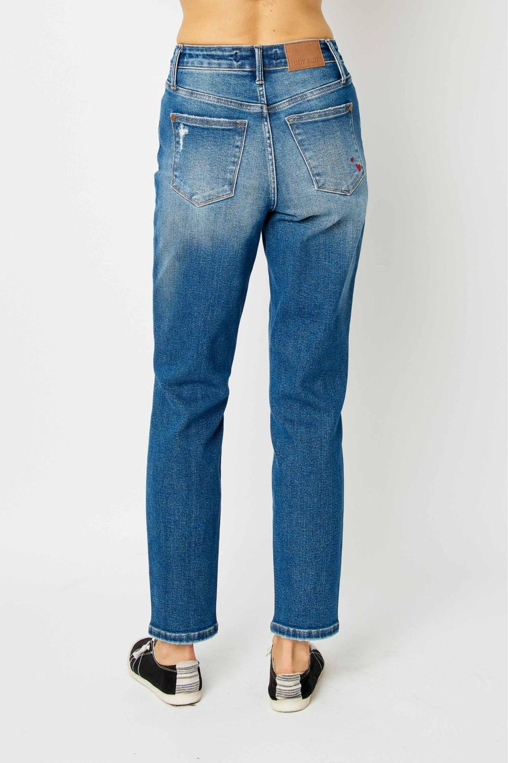 Add a playful touch to your everyday denim lineup with the Judy Blue High Waist Queen of Hearts Boyfriend Jeans. Designed with Judy Blue’s signature stretch and a relaxed boyfriend silhouette, these jeans offer the perfect mix of comfort and charm. The embroidered heart on the coin pocket brings a sweet, unique detail to this casual favorite.