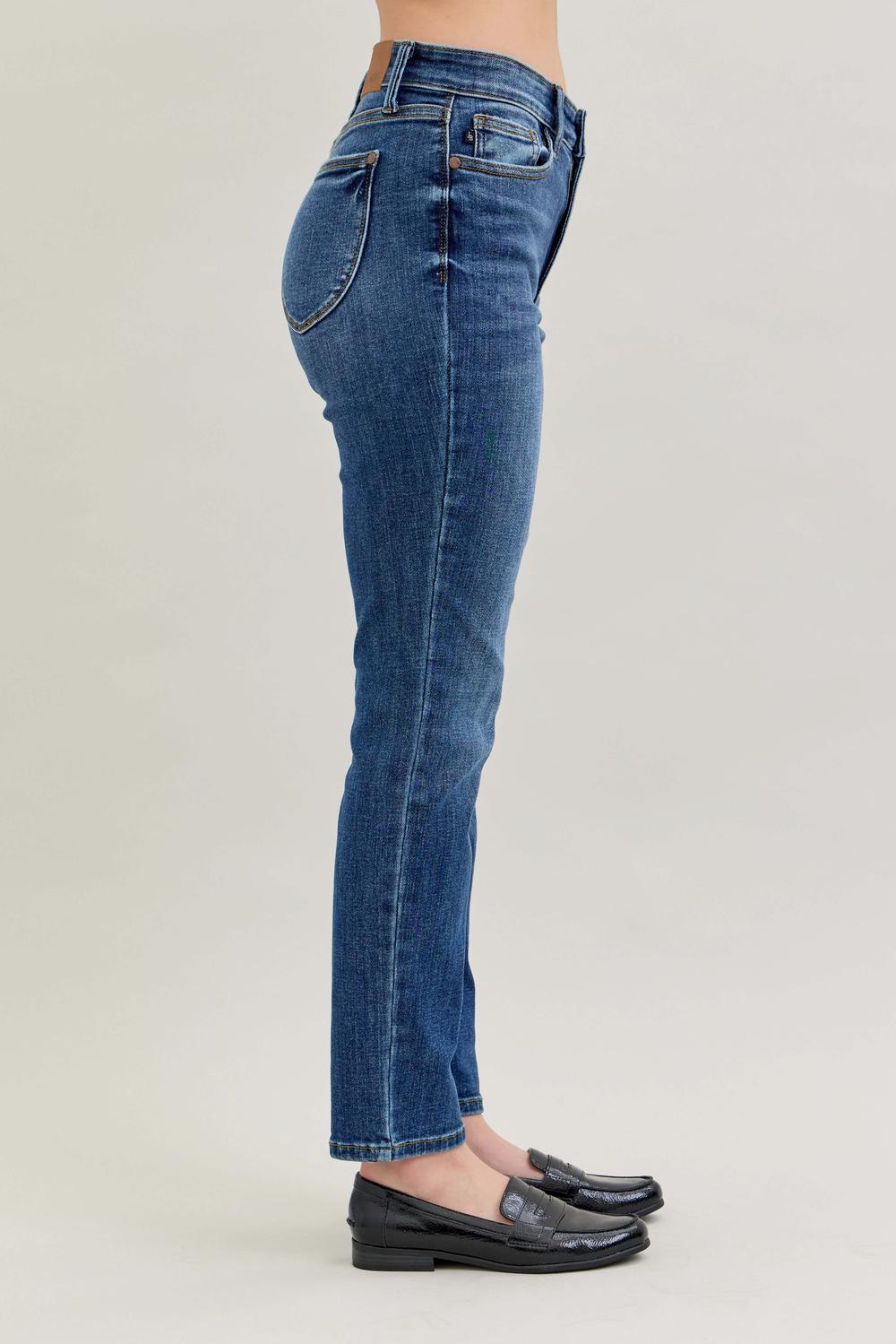 Classic, flattering, and easy to style — the Judy Blue High Waist Shield Back Pocket Slim Jeans offer a sleek silhouette with a touch more room than a traditional skinny. The slim fit provides a streamlined look without clinging too tightly, while the high waist smooths and shapes for all-day comfort. Finished with Judy Blue’s signature stretch, these jeans move with you effortlessly.