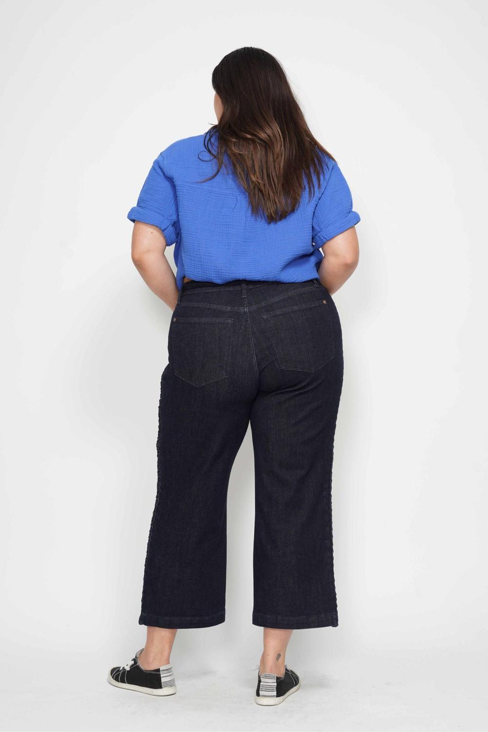 Judy Blue High Waist Side Seam Braid Detail Wide Leg Crop Denim Jeans